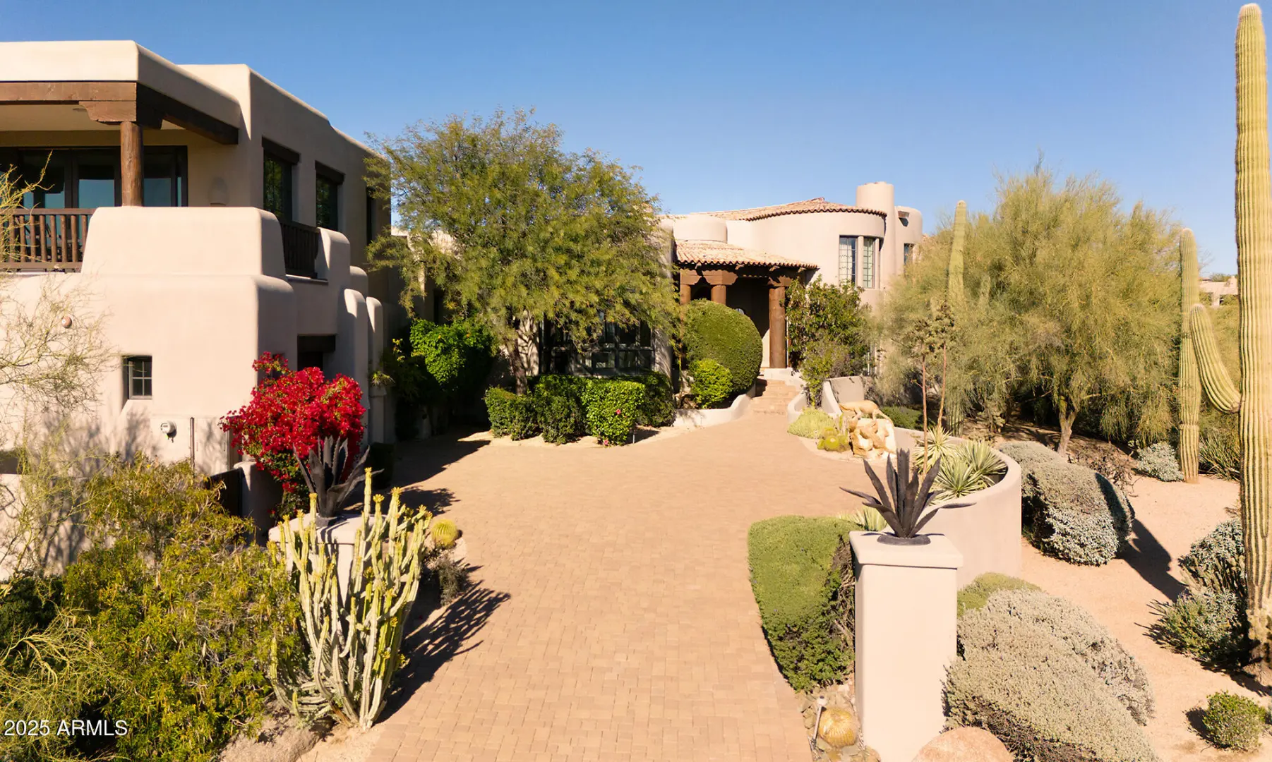 Immediate Golf Membership at Close. Overlooking the 15th hole of the Jack Nicklaus Signature golf course rests this authentic Southwest Territorial. Each room enjoys outstanding vistas of Pinnacle Peak, the McDowell Mountains or city lights. The main home is 6,909/sf and the 2 bedroom Casita is 721/sf for a total of 7,630/sf. The home has 5 bedrooms including a 2 bedroom Casita, 8 baths, a formal living room, formal dining room, gourmet kitchen, family room, theater room, game room, and an opulent master suite, The resort-like backyard sets the stage for the ultimate in SW living. Desert Highlands amenities include Jack Nicklaus Signature golf course 18-hole putting course, 13 tennis courts (4 grass), pickle ball and bocce ball courts, fitness center, guard gated & security patrolled.