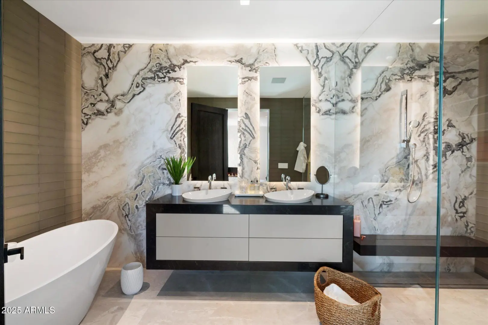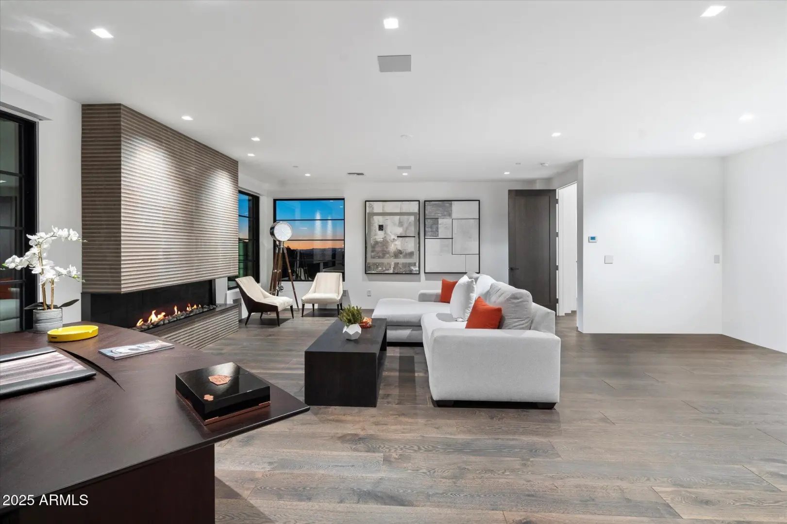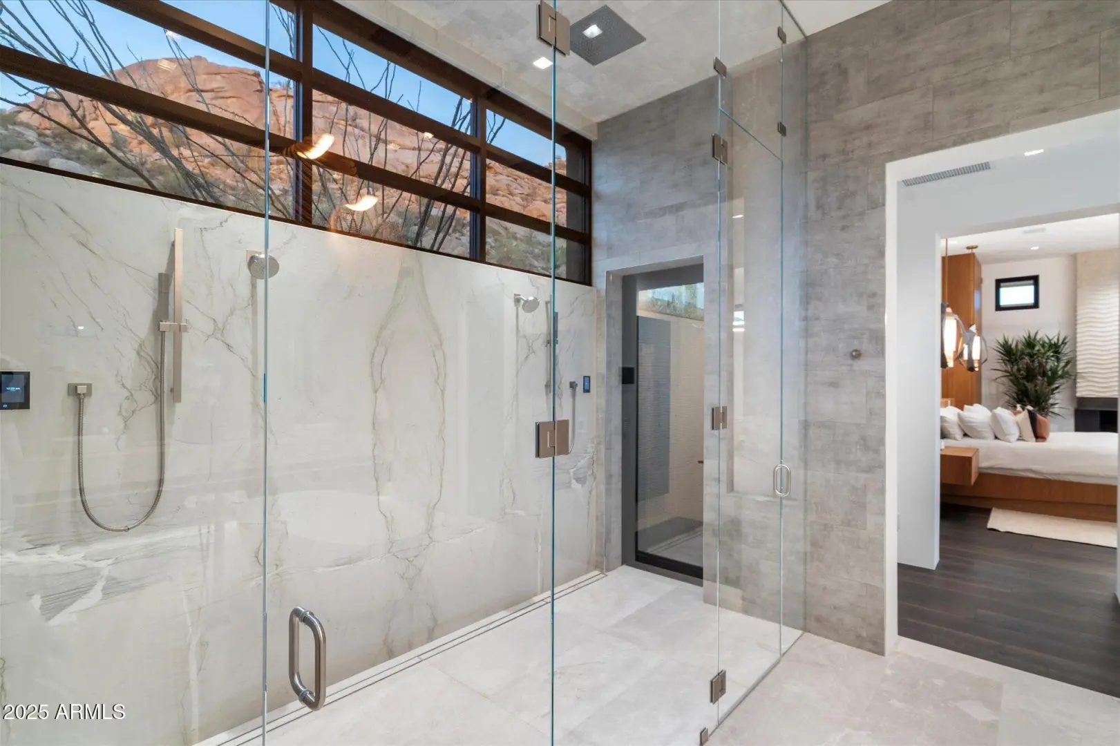 7 min walk to Four Seasons Resort lobby; 1 of 11 custom homesites offering lifestyle amenities to Privada; North Scottsdale gated community on resort grounds, capturing panoramic views of Pinnacle Peak, Troon, McDowell Mountains, city lights, and golf course views. All on one-level living designed by: POETZL architecture, offering a bonus room/office plus a spacious view deck on the second level. European in style with Highest level of construction and building materials; the sliders, fireplaces, Linear cabinetry, Neolith stone countertops, sandblasted marble tiles, wide plank oak flooring, textured walnut millwork, Miele appliances, wine wall, show and prep kitchens are all the very best available. The primary suite and 3 additional ensuite bedrooms each have their own wet bars...