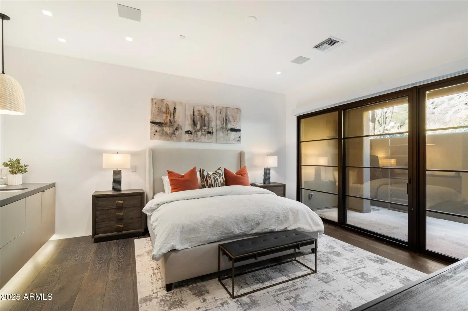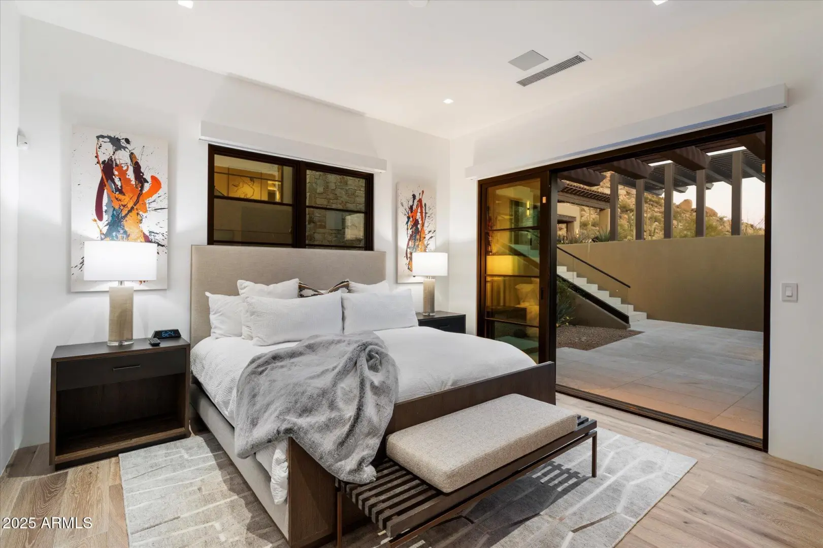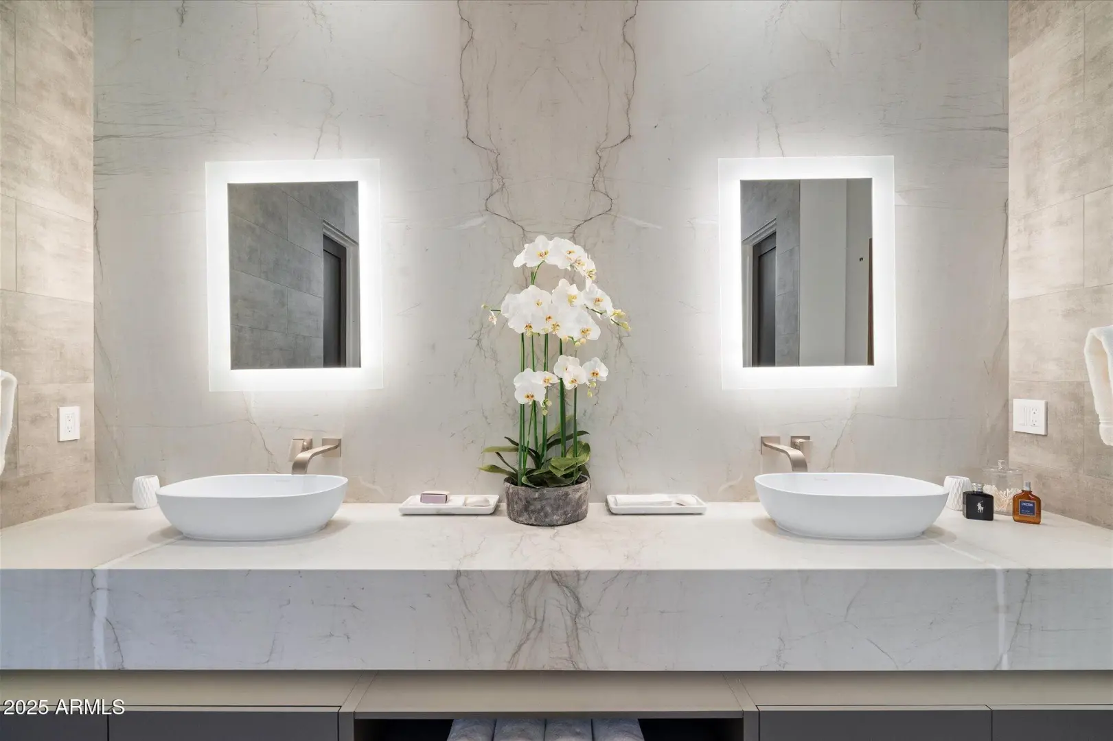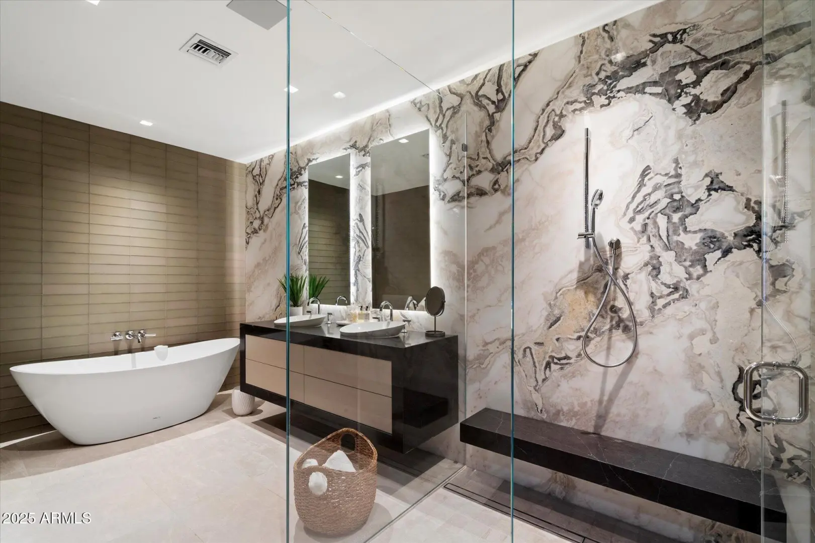 7 min walk to Four Seasons Resort lobby; 1 of 11 custom homesites offering lifestyle amenities to Privada; North Scottsdale gated community on resort grounds, capturing panoramic views of Pinnacle Peak, Troon, McDowell Mountains, city lights, and golf course views. All on one-level living designed by: POETZL architecture, offering a bonus room/office plus a spacious view deck on the second level. European in style with Highest level of construction and building materials; the sliders, fireplaces, Linear cabinetry, Neolith stone countertops, sandblasted marble tiles, wide plank oak flooring, textured walnut millwork, Miele appliances, wine wall, show and prep kitchens are all the very best available. The primary suite and 3 additional ensuite bedrooms each have their own wet bars...