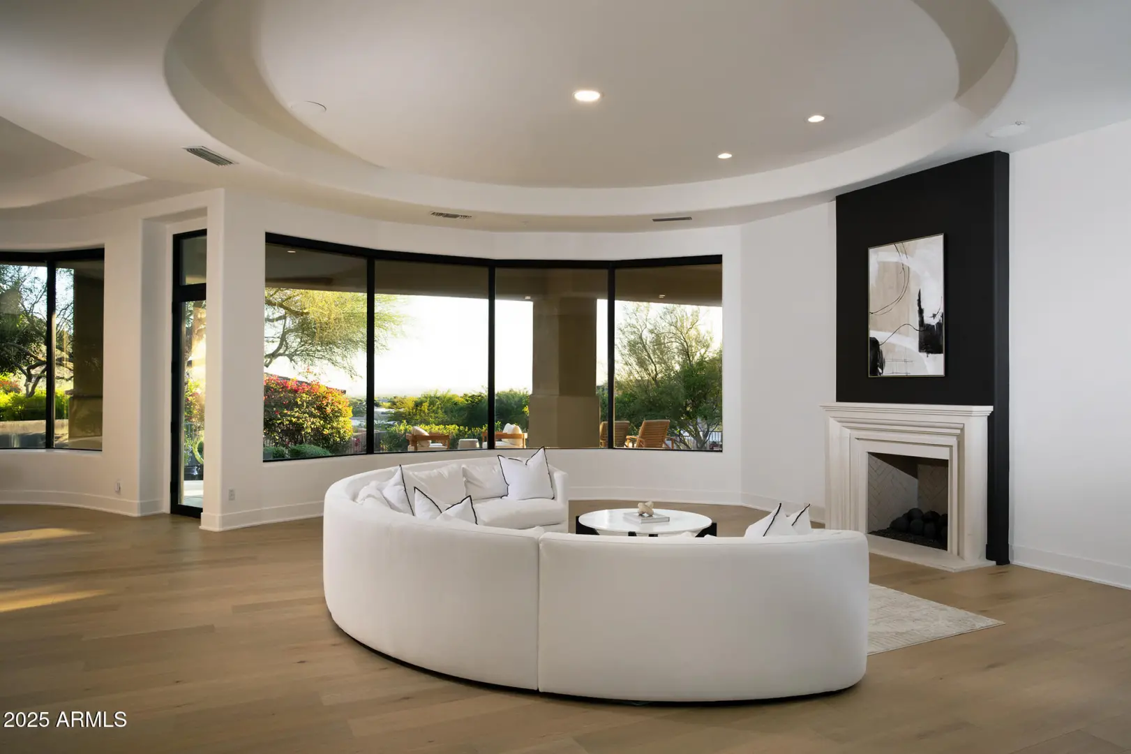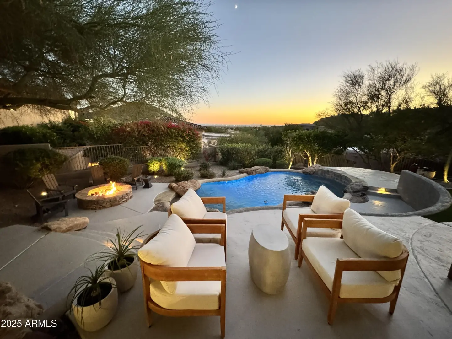 Nestled high on the mountain in the exclusive gated Canyons at Scottsdale Mountain rests this magnificently remodeled home. The view out back overlooks a cascading waterfall and pebble-tech pool, desert & mountain surroundings and city light views. The 'homes rotunda' plan offers a huge great room w/fireplace and coffered ceilings, dining room and breakfast room opening to the gourmet kitchen w/large island, upgraded cabinetry, high-end appliances and walk in pantry. The swank Primary suite sports a spa like bath. All bedrooms have their own baths and there is a separate office. The home has been extensively update with newer roof, window, wood flooring, cabinetry, main fridge, wine fridge, dishwasher, double ovens and more. See Upgrade List in Documents folder.