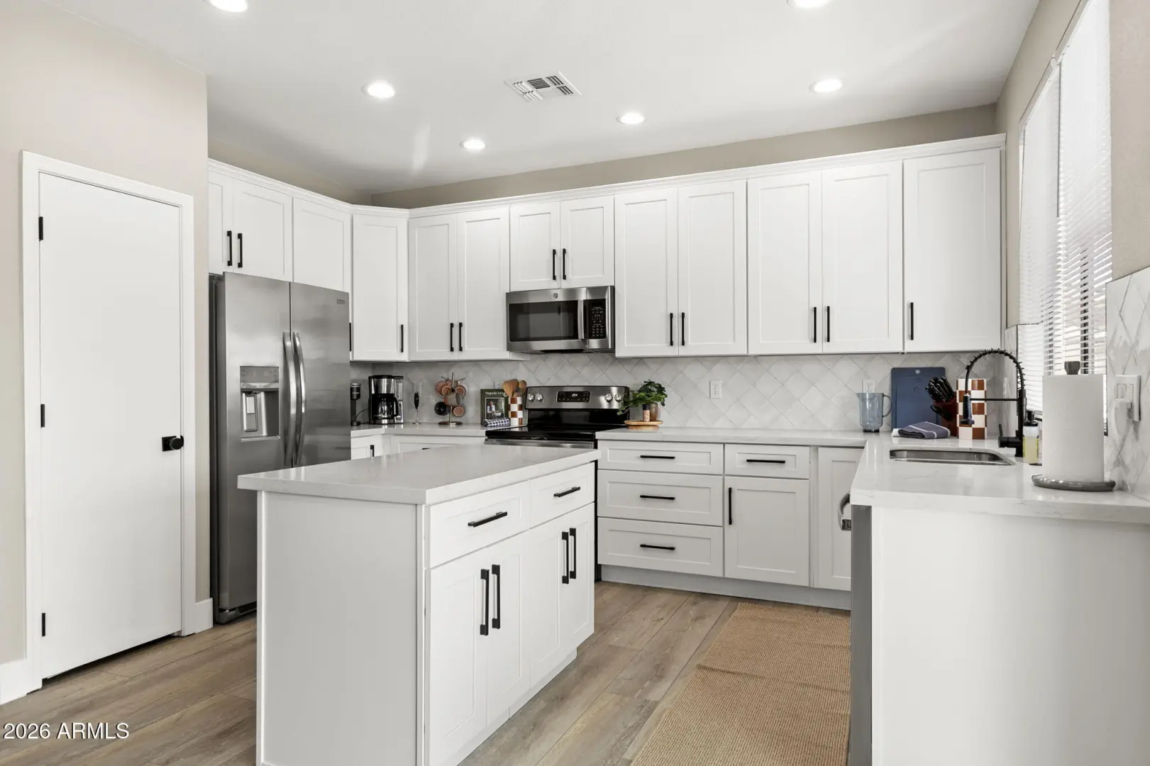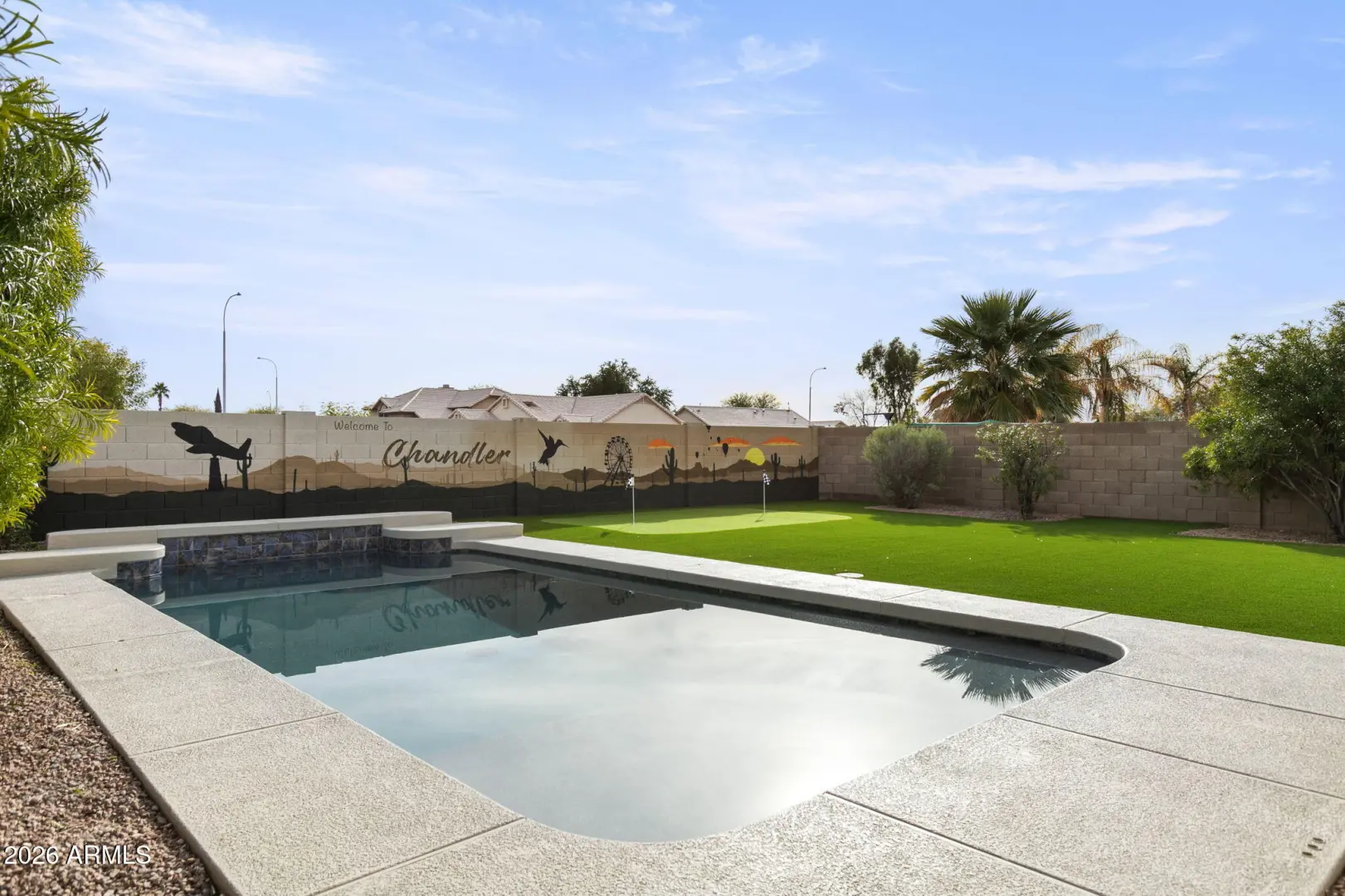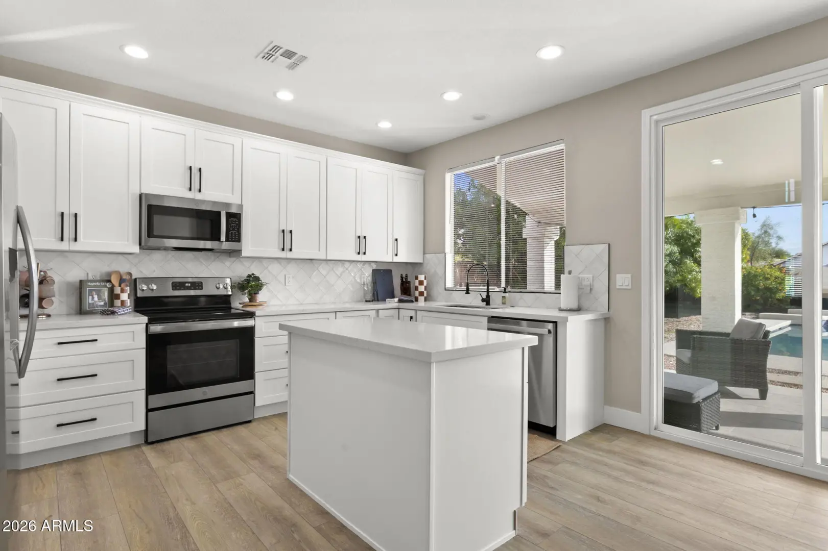 Welcome to this beautifully updated home, thoughtfully designed and truly move-in ready. The open floorplan creates an effortless flow for entertaining, with both living and family rooms and an inviting island kitchen at the center of it all. A convenient first-floor bedroom and bath offer flexibility for guests or a private workspace, while upstairs features three additional bedrooms and two well-appointed bathrooms. Step outside to your own private retreat, complete with a tiled covered patio, a sparkling heated pool, and plenty of room to unwind or gather with friends. Set within a community with no HOA and just moments from shopping and a neighborhood park, this home blends comfort, convenience, and a touch of everyday luxury. Owned solar, new roof 2024, new water heater 2024 and more