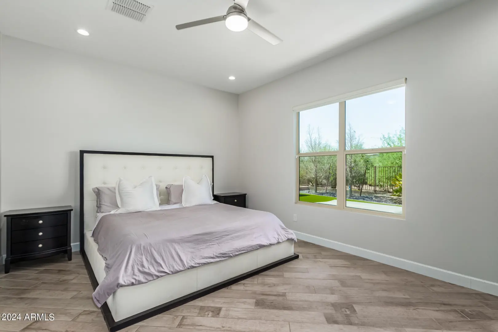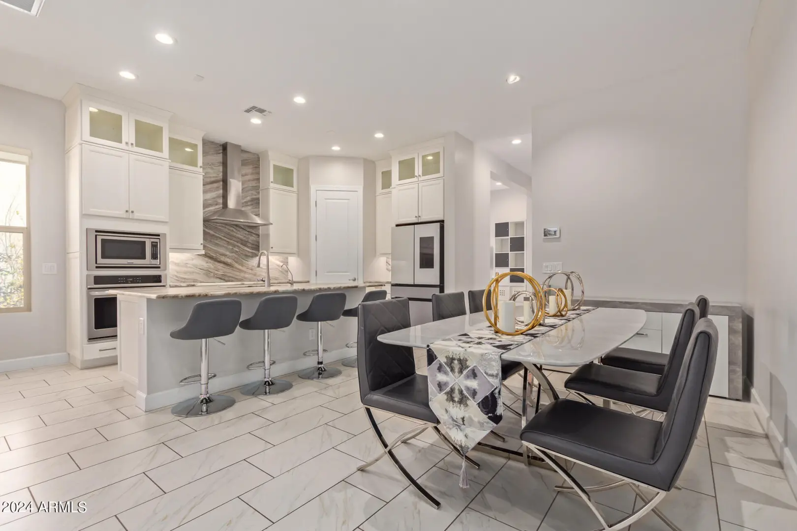 This fully furnished beauty in an amazing gated location has everything to offer. This 4 bed 3 full bath highly upgraded home includes tile throughout, beautiful cabinets, and counters in this single level stunner that has a great layout. The backyard features a large turf area, basketball court, outdoor kitchen and plenty of covered space all with a view fence to the natural wash. The gated community features a pool and plenty of parks and trails throughout. The location cannot be beat. Just outside the gate you will find easy access to the 101 freeway, Mayo Clinic, Whole Foods, movies theater, shopping, dining, and so much more.