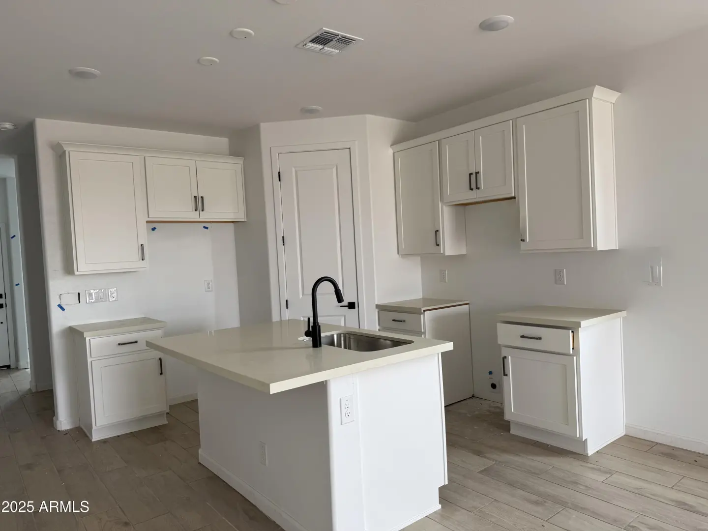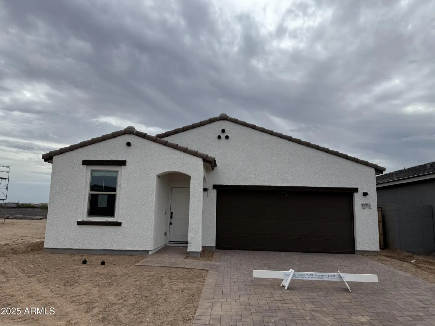 Brand new community in Surprise! This stunning single-story home offers 1,494 sq. ft. of open living space with 3 bedrooms, 2 bathrooms, a den, and a 2-car garage. Step inside and feel the warmth of our Harmony Collection, where relaxed tones and sunlit spaces create a cozy escape. The kitchen features white 42'' cabinets, carrara breeze quartz counters, white mosaic backsplash, and stainless-steel appliances. Wood-look tile flows throughout the main areas, leading to a great room with a 4-panel sliding glass door opening to your covered patio. The primary suite offers dual sinks, a walk-in shower, and a large closet. Includes paver driveway, 8' doors, blinds, soft water loop, and all appliances. Prime location featuring a community pool, multiple parks, quick access to the freeway, with