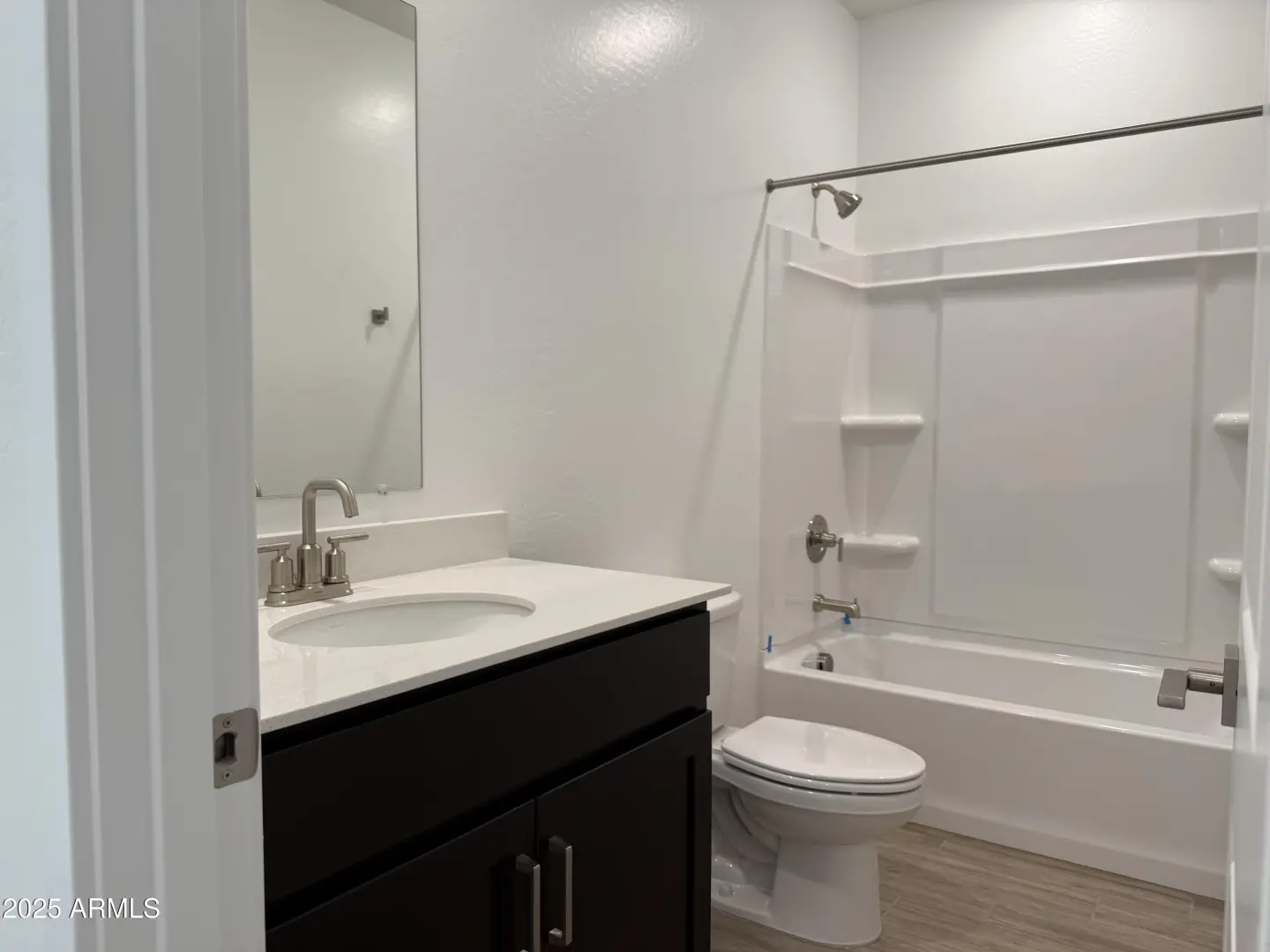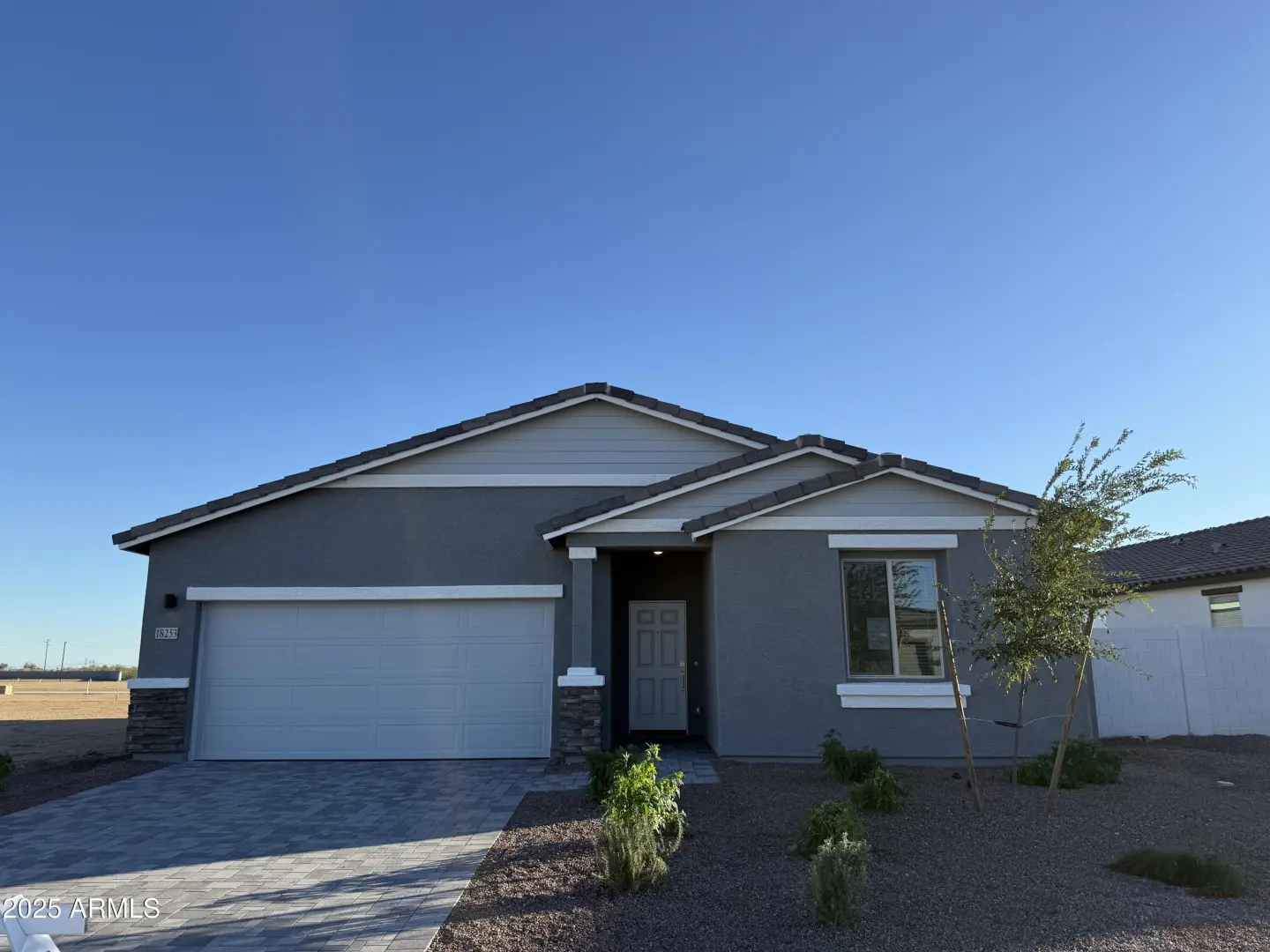 Brand new community in Surprise! This impressive single-story home offers 1,949 sq. ft. of functional luxury, featuring 3 bedrooms, 2.5 bathrooms, a den, and a 2-car garage. Step inside and experience the Roosevelt Collection, where classic design meets modern comfort. Rich sarsaparilla 42'' cabinets pair beautifully with carrara breeze quartz countertops, a white tile backsplash, and wood-look tile throughout all main areas. The open-concept kitchen and great room, highlighted by a 4-panel sliding glass door, create the perfect space for indoor-outdoor entertaining. The primary suite features dual sinks, a spacious walk-in shower, and a large closet. Complete with a paver driveway, 8' doors, blinds, soft water loop, and all appliances. Prime location featuring a community pool, multiple