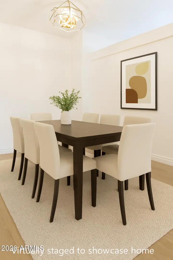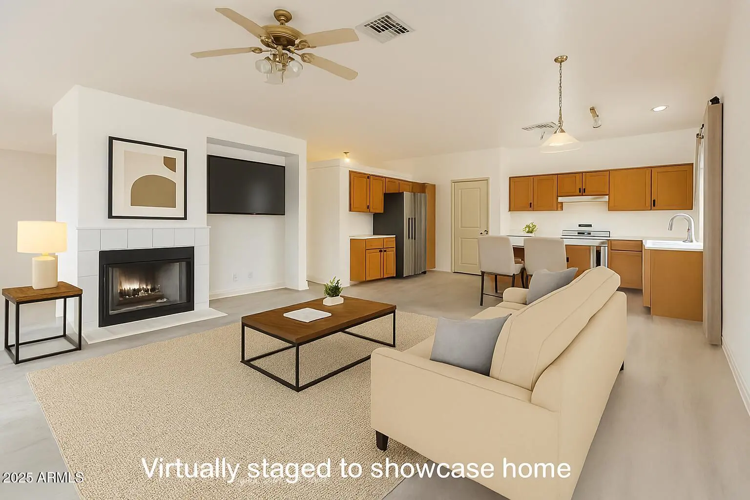 Welcome to this nicely updated single level home offering 4 bedrooms and 2 bathrooms in a quiet North Phoenix community. Upgrades include newer flooring in all rooms, a recently replaced roof and HVAC, fresh interior and exterior paint, and a newer hot water tank. The open floor plan offers vaulted ceilings and wood look laminate flooring throughout the main living areas, creating a bright and comfortable setting. The kitchen is well appointed with plentiful cabinetry, a center island, newer SS Fridge and dishwasher, an eat-in dining space, and a separate formal dining room—providing great versatility for daily living and entertaining. Together, these updates give the home a clean, move in ready feel from the moment you step inside.