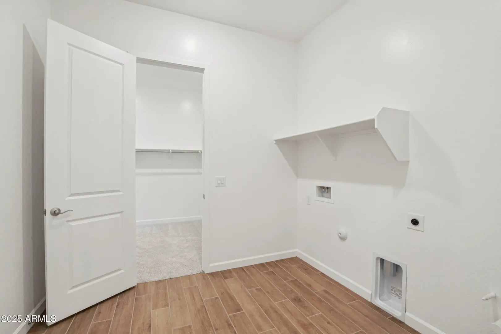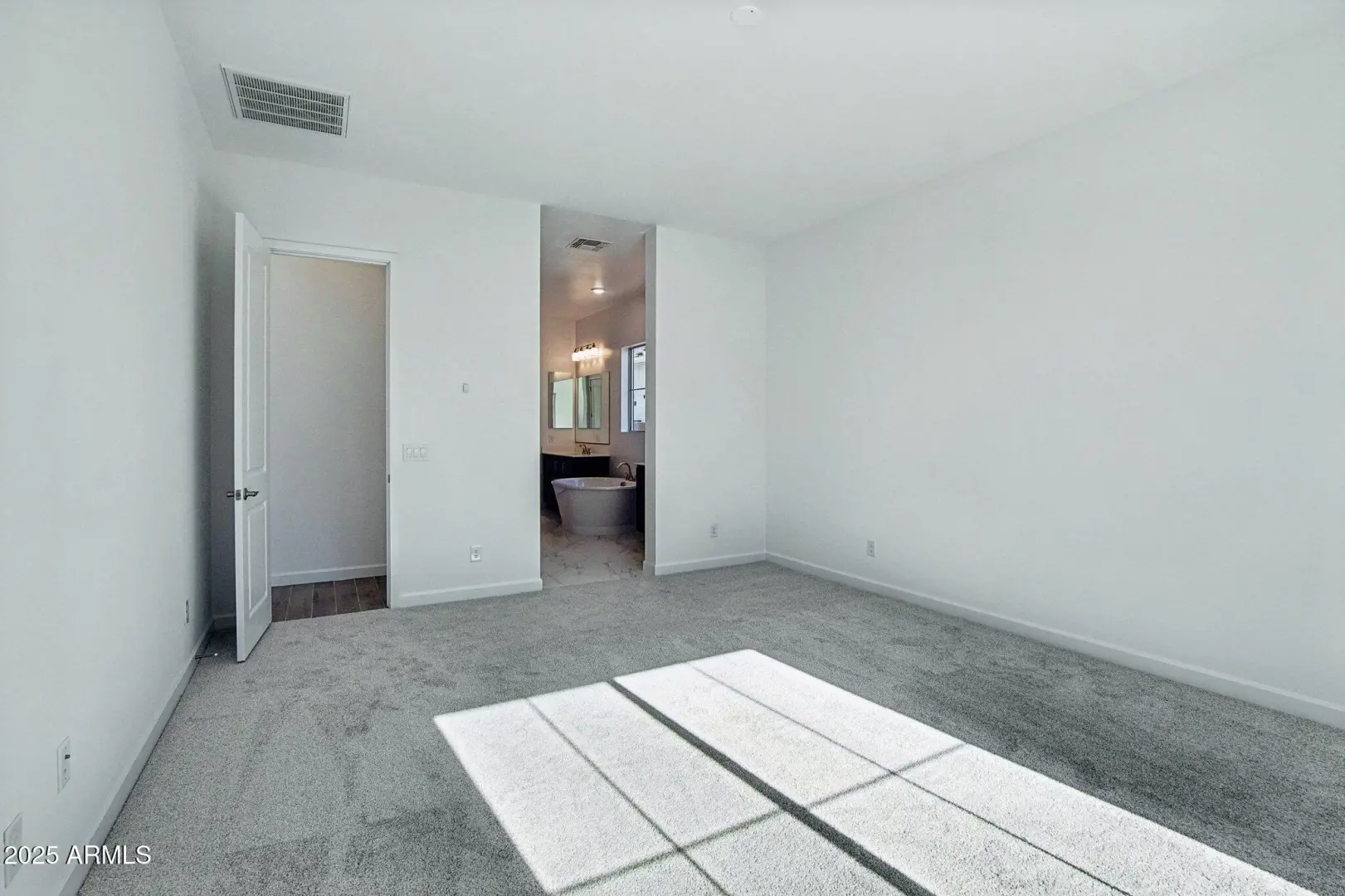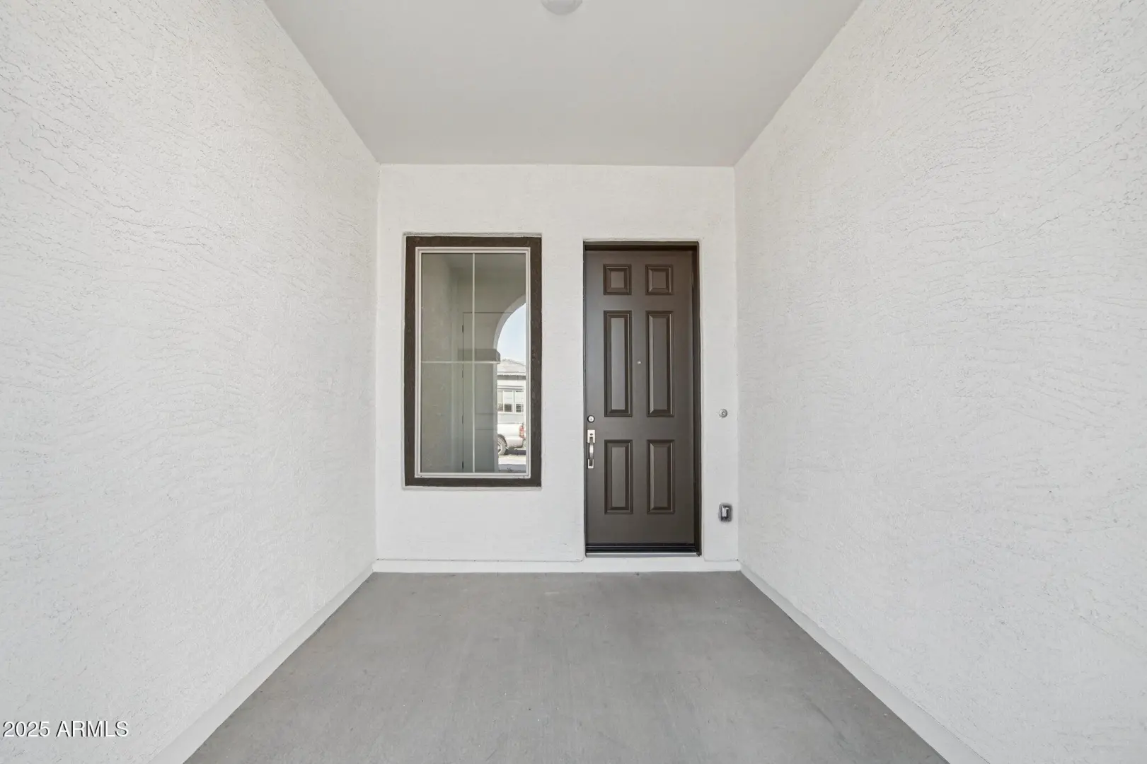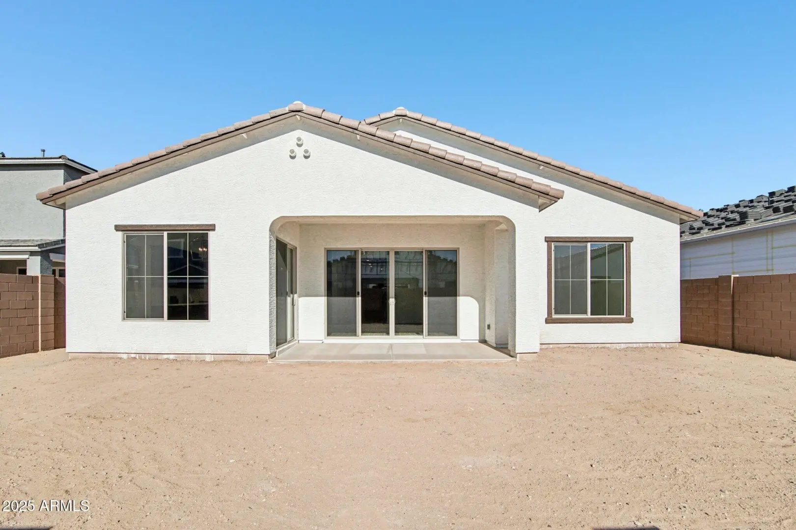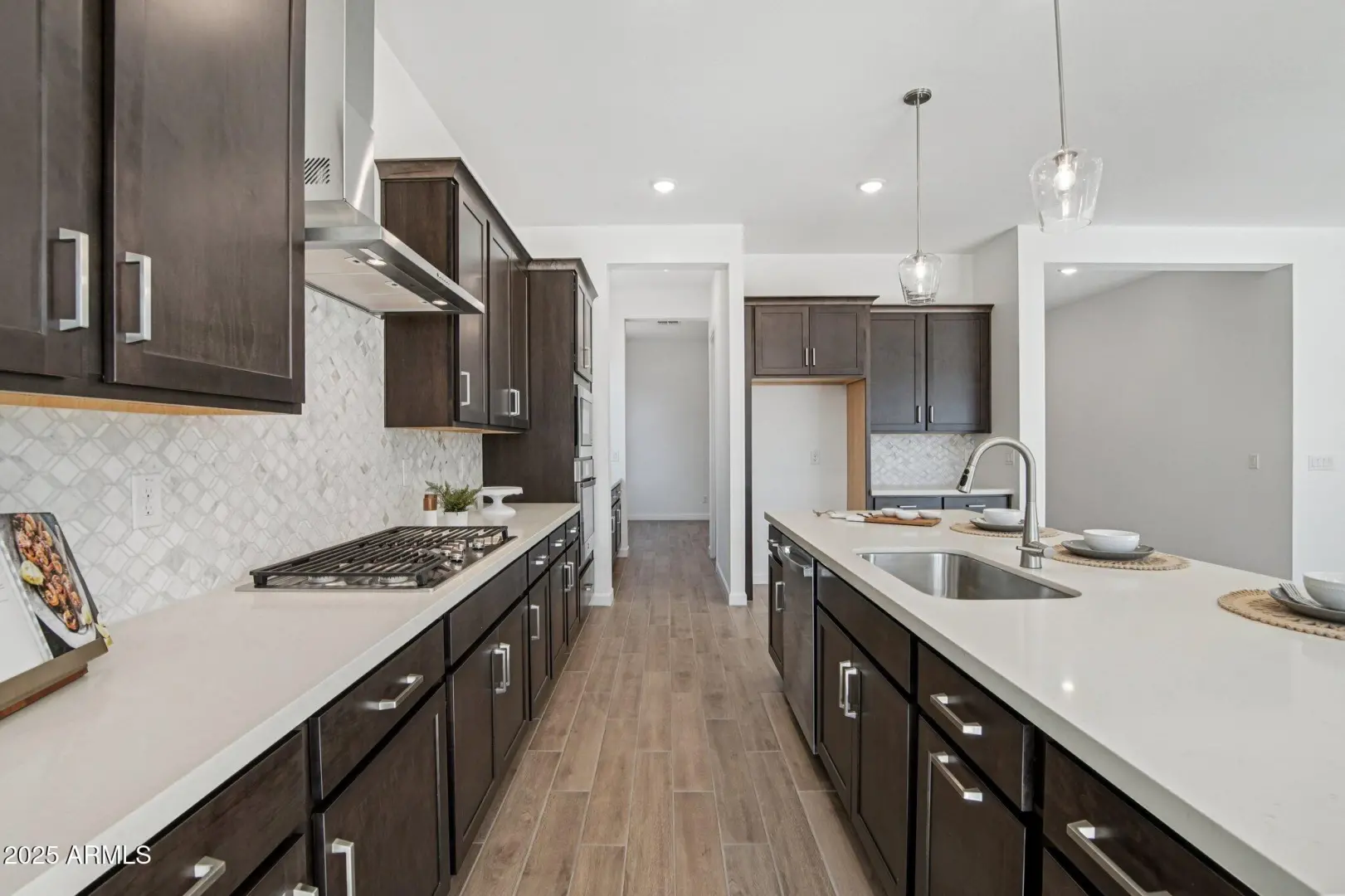 Modern and bright, this single-story 2,702 sq ft Topaz Spanish home offers clean lines, natural light, and a spacious open layout. The great room features a four-panel sliding glass door that opens to the backyard, flowing into a warm contemporary kitchen with dark cabinetry, Carrara Breeze quartz, GE Profile appliances, and a large butler's pantry. A versatile teen/flex room adds extra living space. The primary suite includes a freestanding tub, enlarged tiled shower, dual vanities, and a closet-to-laundry pass-through. Wood-look tile throughout main areas, 8' doors, tankless water heater, EV outlet, and a large lot with double gate. Community amenities include a heated pool, spa, pickleball, parks, and walking paths.