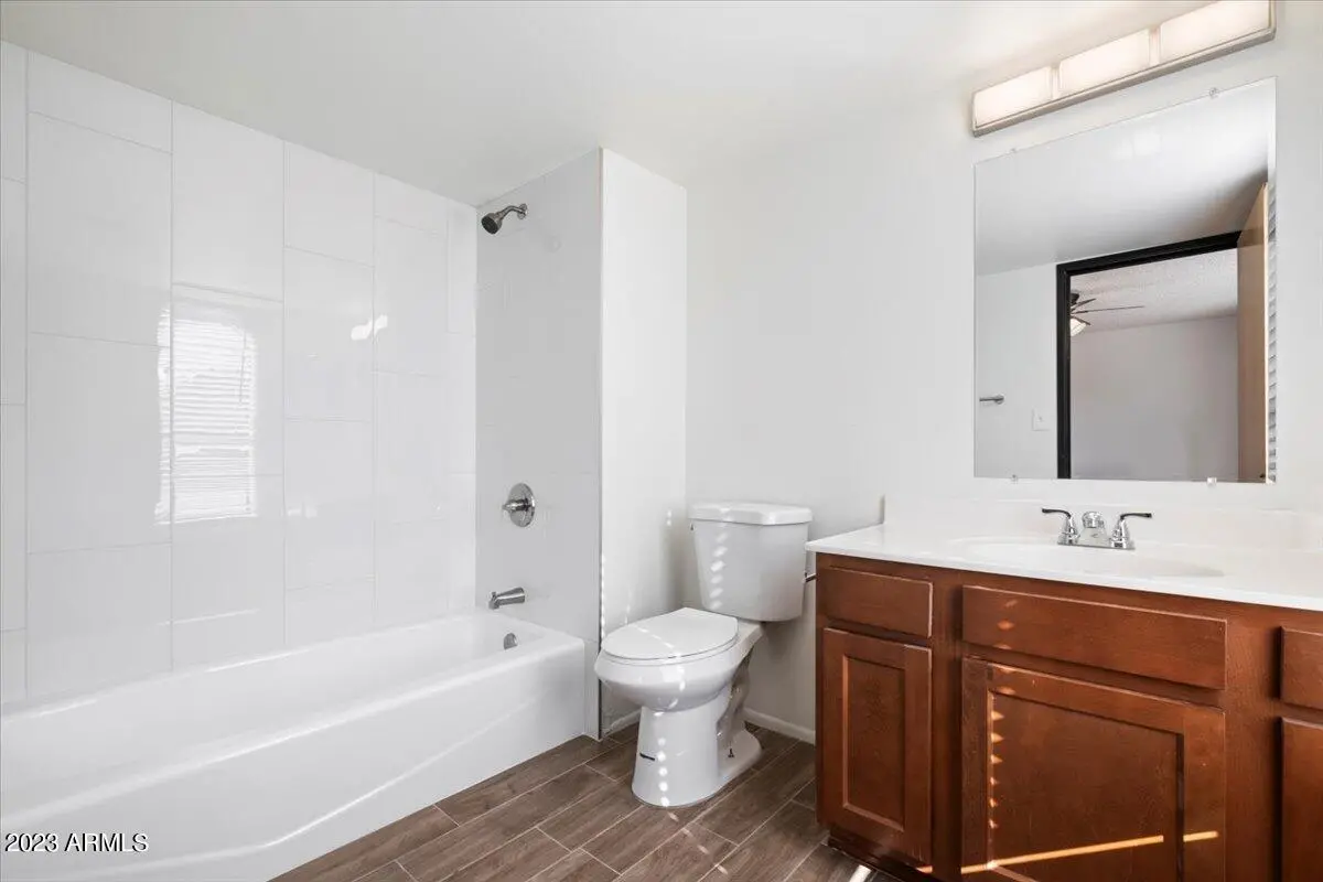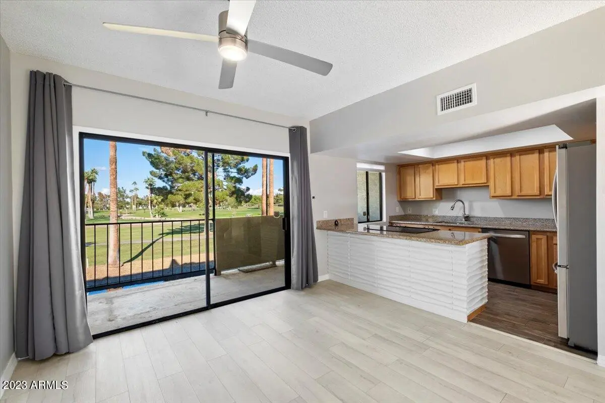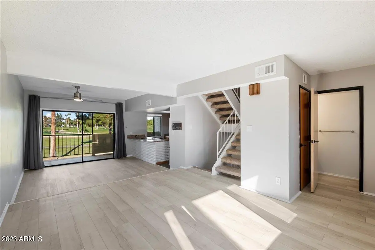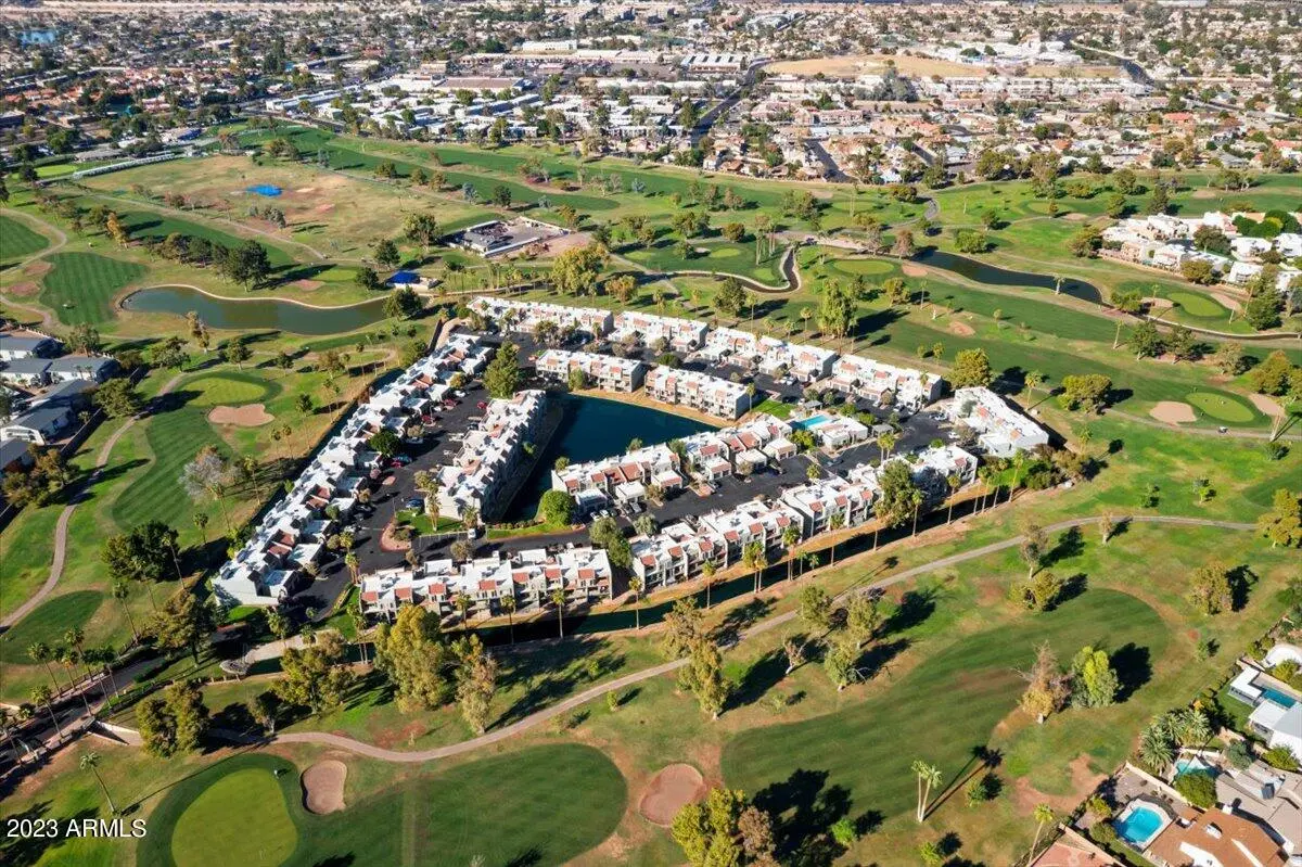 This waterfront home overlooks the 11th Fairway of the Dobson Ranch Golf Course in the Lake Park gated community. There are 2 master/primary suites with walk-in closets and newly remodeled showers on the upper floor. The lower level is a moldable space, with its own private/walk out patio, that could be used as a 3rd bedroom, office, or entertainment/living space. Kitchen has granite counters and newer stainless-steel appliances. Other features include luxury vinyl plank flooring, solid core doors throughout, ample storage and an HVAC system that is about 5-6 years old. Owner has also upgraded the washer, dishwasher, disposal, water heater, and all plumbing angle stops and the main ball valve since September of 2023. The view from this unit is unbeatable with a private balcony off...