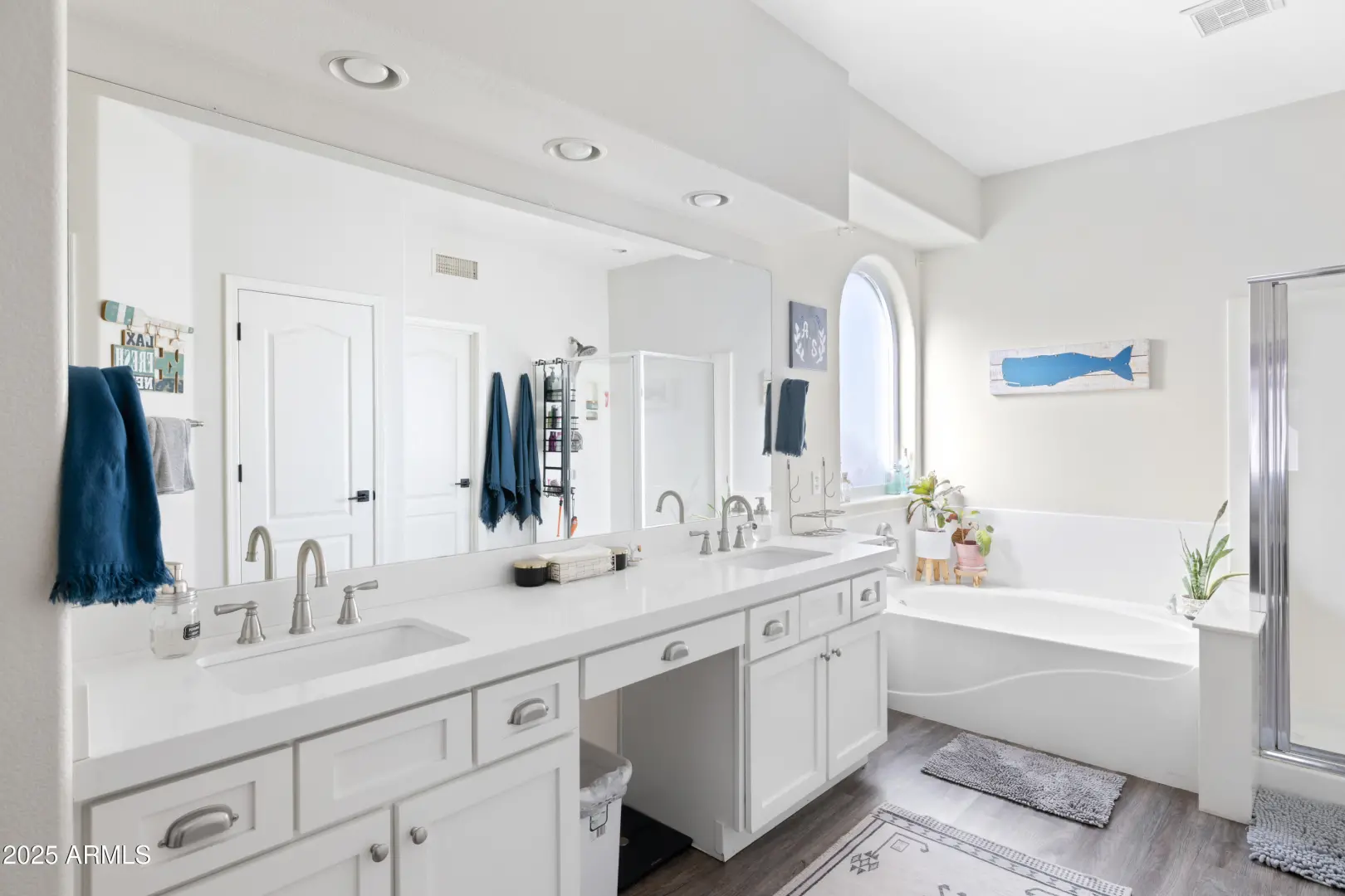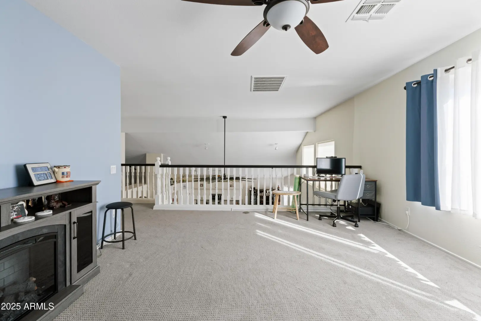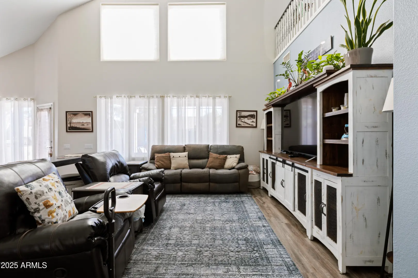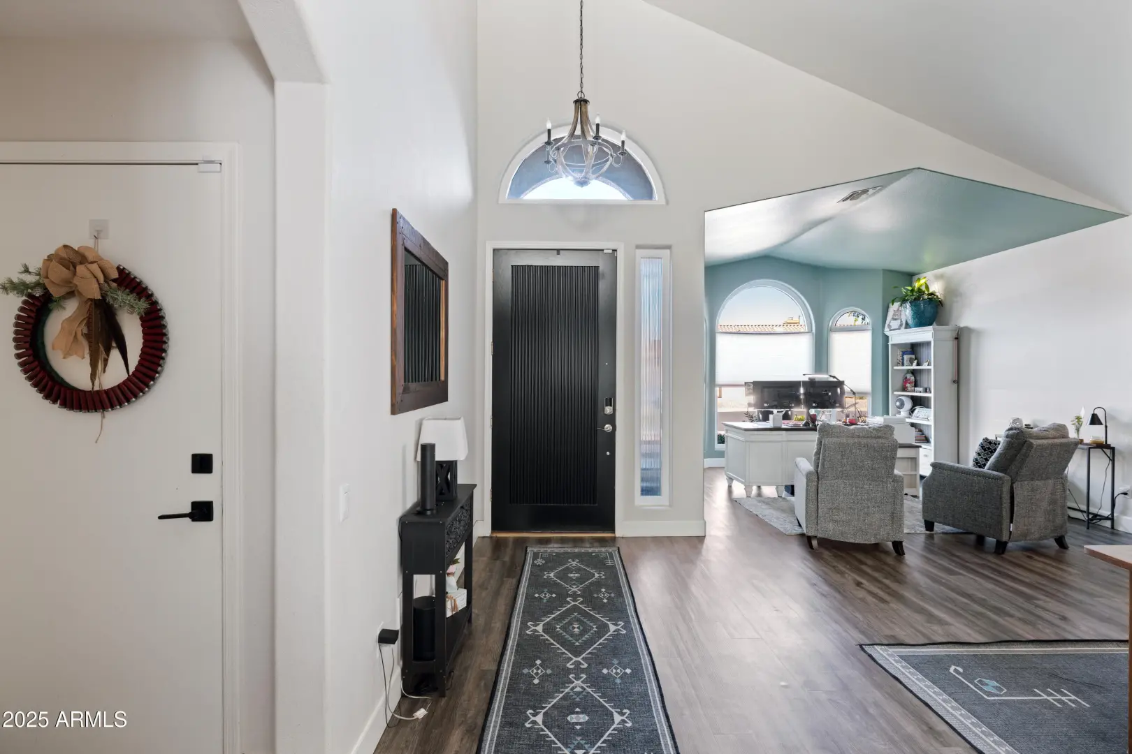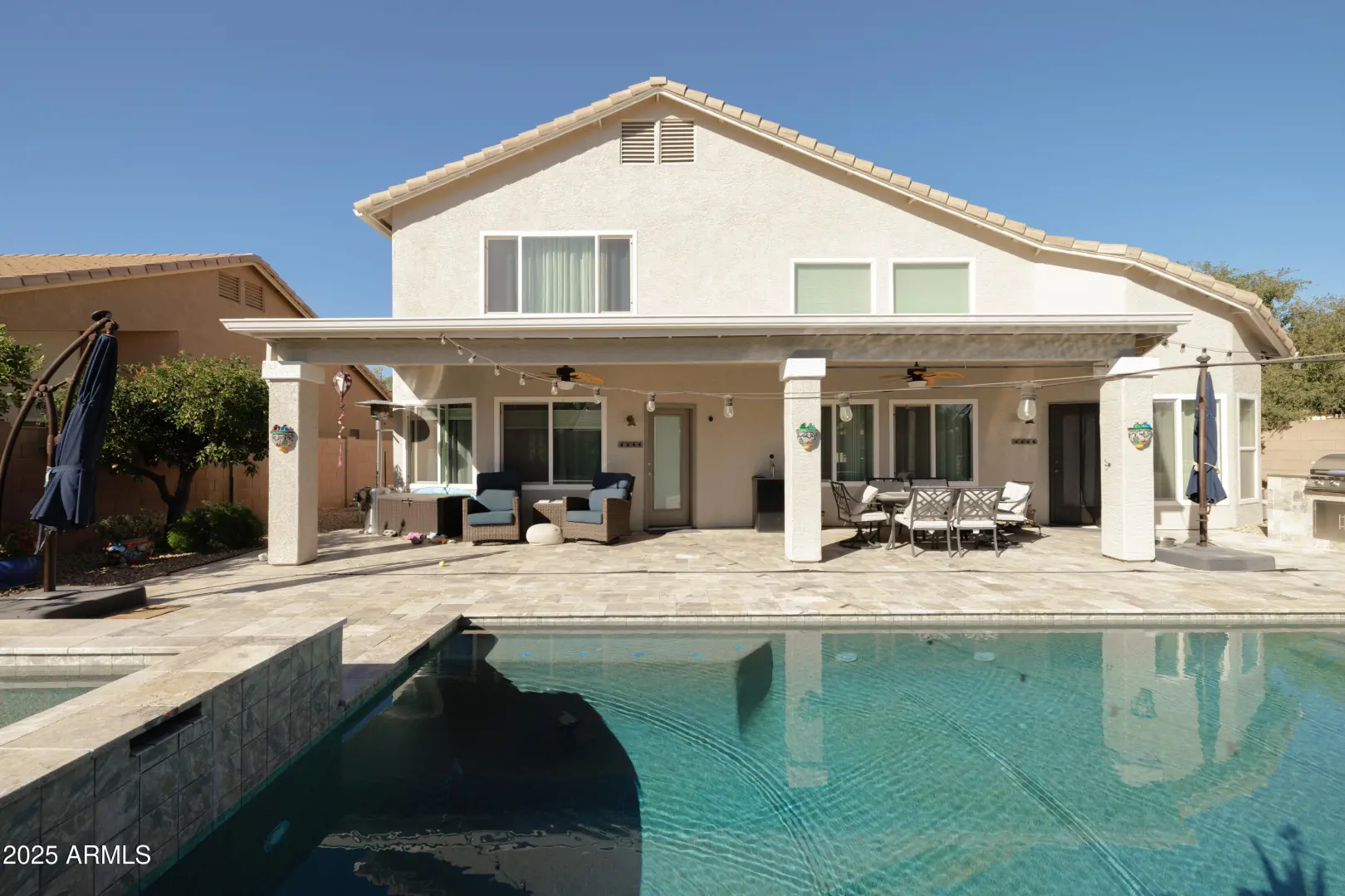 Welcome to this spacious two-story home situated on a corner lot. Inside, soaring vaulted ceilings and oversized windows flood the home with natural light, creating a bright and inviting atmosphere throughout. Designed for both everyday living and entertaining, the open floor plan features a formal living and dining area, a comfortable family room, and a well-appointed kitchen that keeps you connected to it all. The generous primary suite is conveniently located on the main level, offering a peaceful retreat with easy access and privacy. Upstairs, a light-filled loft provides additional living space, ideal for a home office, playroom, or media area, alongside three spacious bedrooms and a full bathroom. Step outside to your own backyard oasis, complete with a sparkling pool and