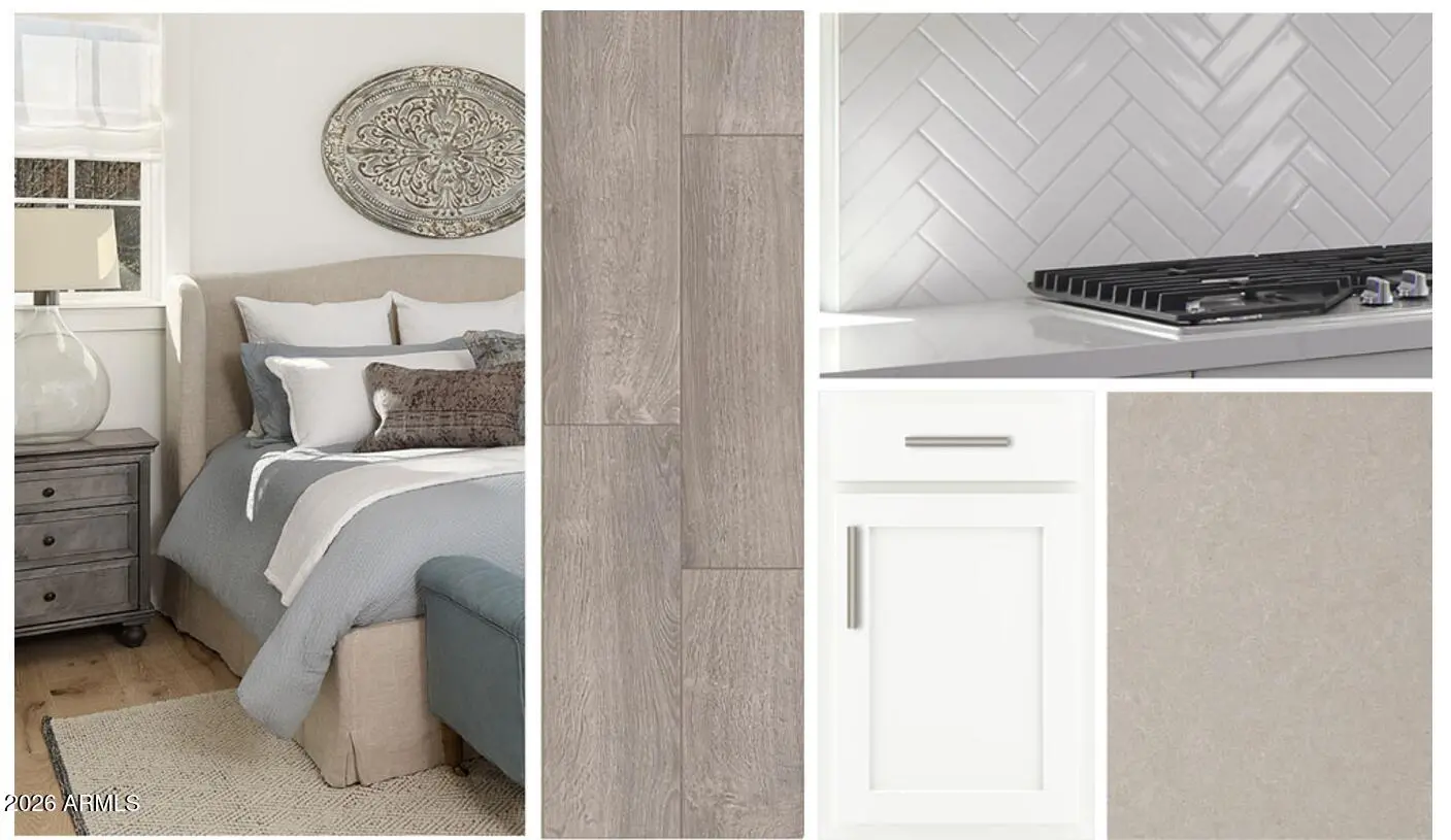 The Opal RV floorplan at Amarillo Creek in Maricopa offers 2,124 sq. ft. of beautifully designed single-story living with 4 bedrooms, 3 baths, a den, and an impressive 4-car tandem RV garage with service door, all showcased in a Modern elevation. The open-concept layout seamlessly connects the kitchen, dining, and great room, creating the perfect space for everyday living and entertaining, while the centrally located laundry room provides convenience to all bedrooms. The spacious primary suite features a linen closet and large walk-in closet for added storage. Styled with the Timeless AW Collection, this home includes white 42'' soft-close cabinets, satin nickel hardware, soft gray quartz countertops, a white herringbone tile backsplash, and 7x22 warm wood-look tile flooring throughout all
