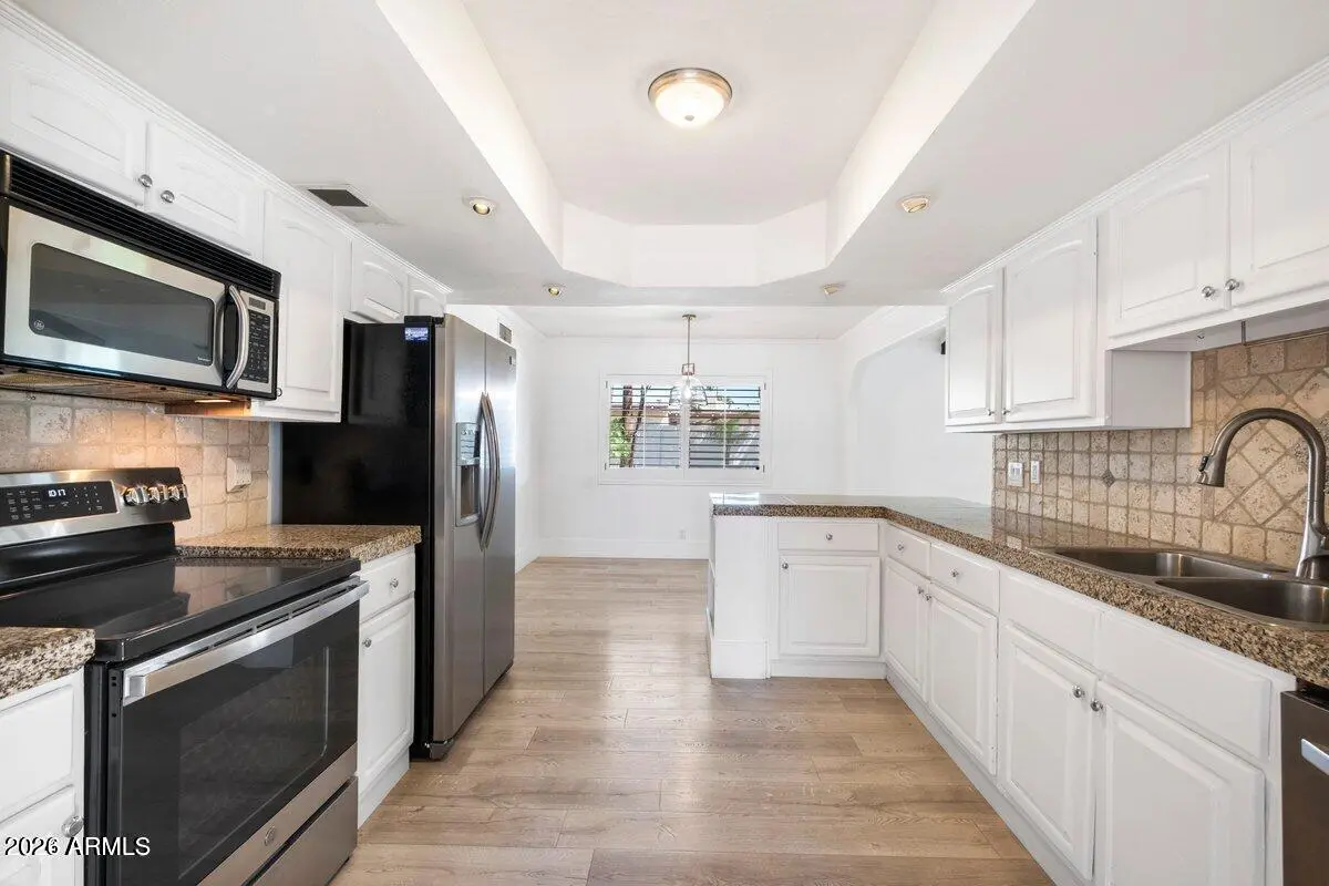 Ideally situated in the heart of Scottsdale, this beautifully updated 4-bedroom, 3-bath home offers the perfect blend of comfort, style, and convenience. Enjoy hardwood floors, light-filled living spaces, and a functional floor plan designed for everyday living and entertaining. The updated kitchen features stainless steel appliances, complemented by fresh, modern bathrooms throughout. Step outside to a fantastic backyard, perfect for relaxing under Arizona sunsets. Additional features include a washer and dryer, ample storage, an electric vehicle charger, Google Nest high-efficiency thermostats, and extra garage storage.