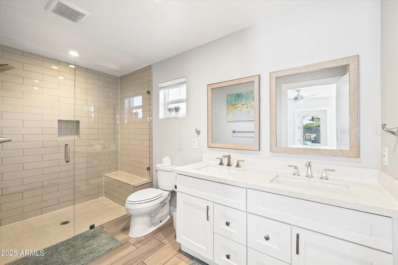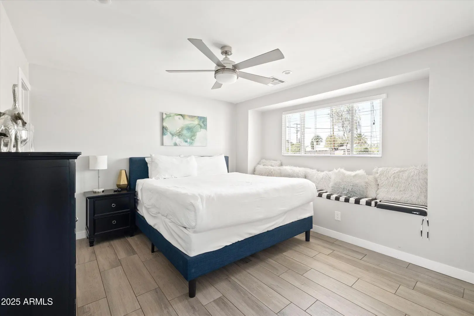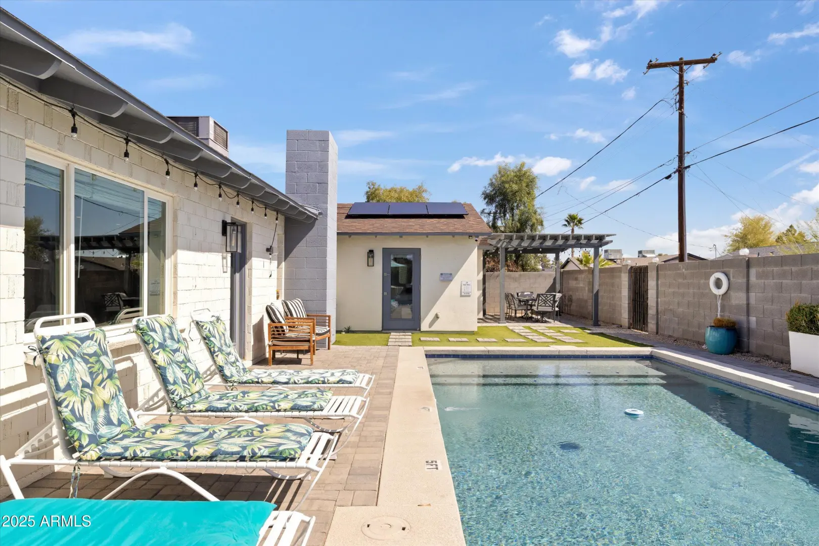 Welcome to 8201 E Piccadilly, where contemporary style meets desert charm. This 4-bed, 3.5-bath home offers 1,869 sq. ft. of thoughtfully designed living space, perfectly balancing comfort and sophistication. Step inside to a bright, open layout that flows effortlessly from the living room to the dining area and chef's kitchen. Sleek stainless-steel appliances, custom cabinetry, and a generous island with seating create a true centerpiece for entertaining. The home features two private primary suites, each with its own spa-inspired bath—ideal for multi-generational living, guests, or a luxe home office setup. Outside, your private backyard oasis awaits: a sparkling pool, lush landscaping, and a shaded patio for dining under the stars...