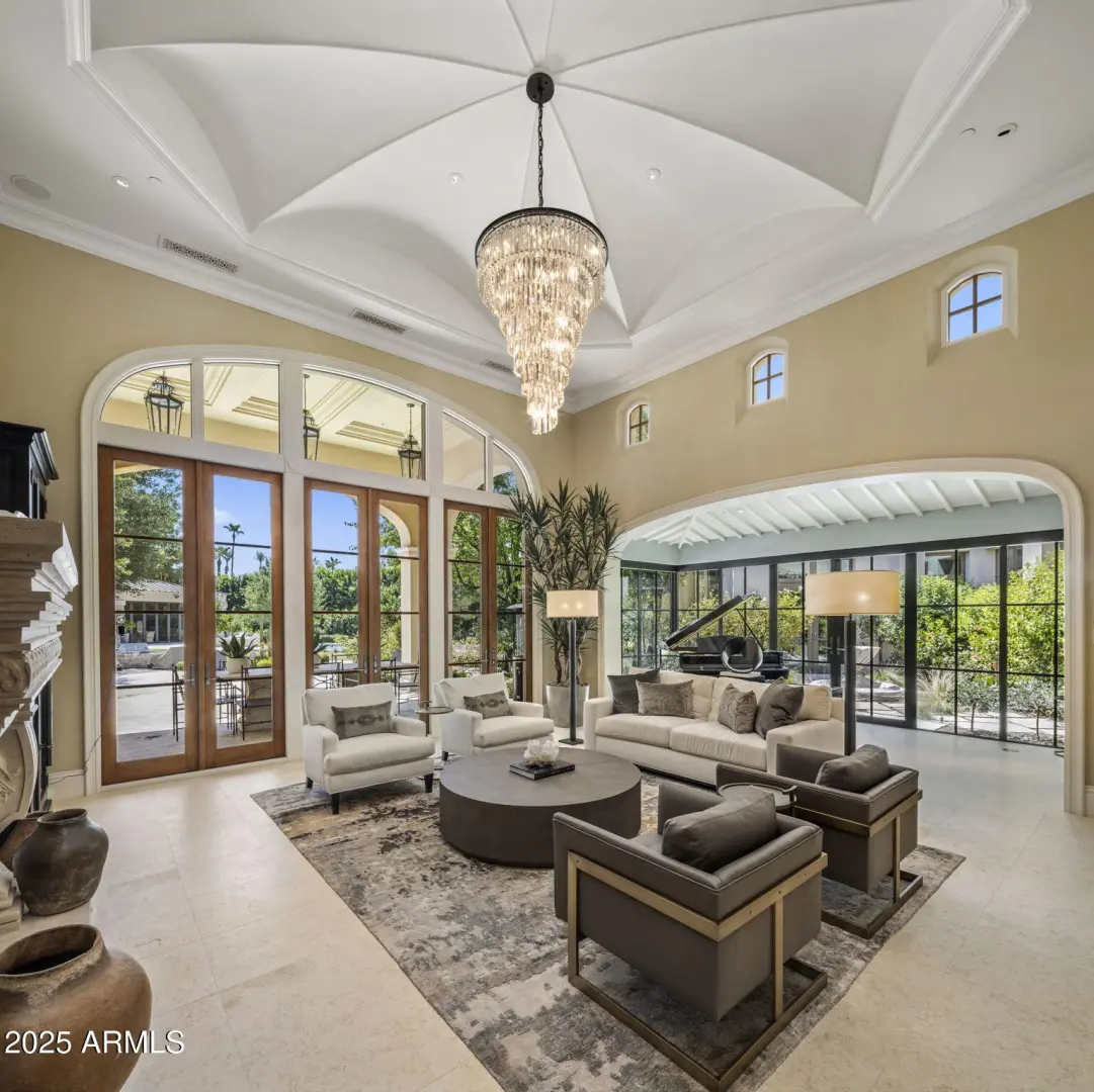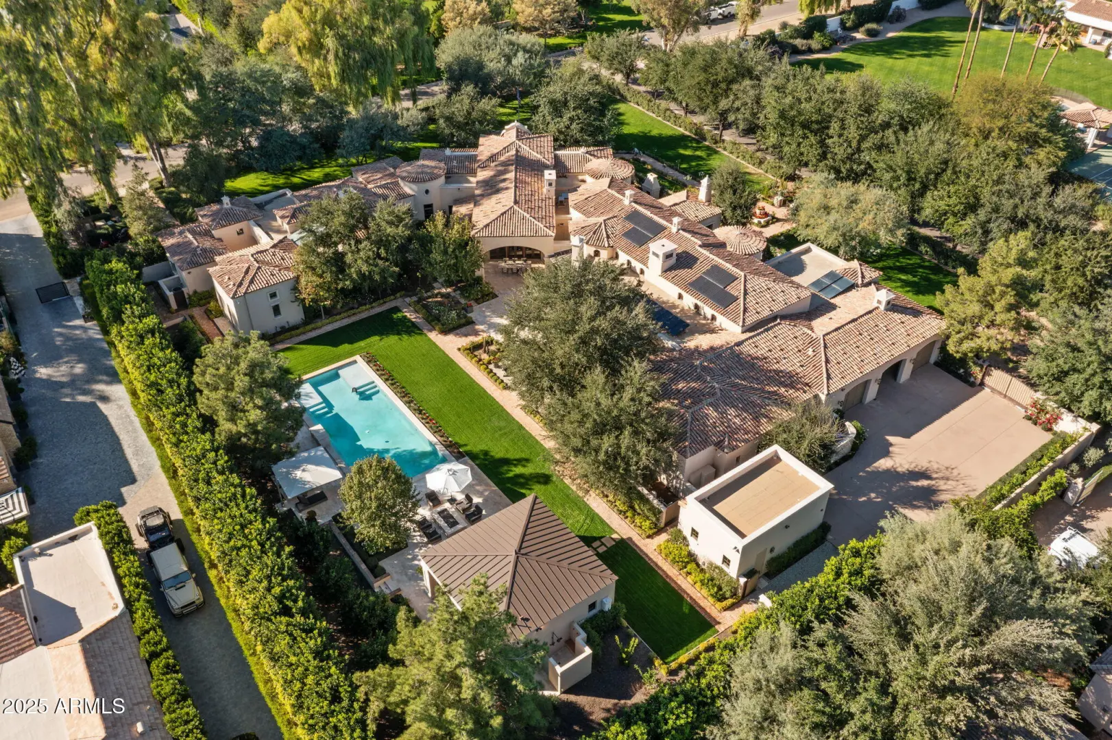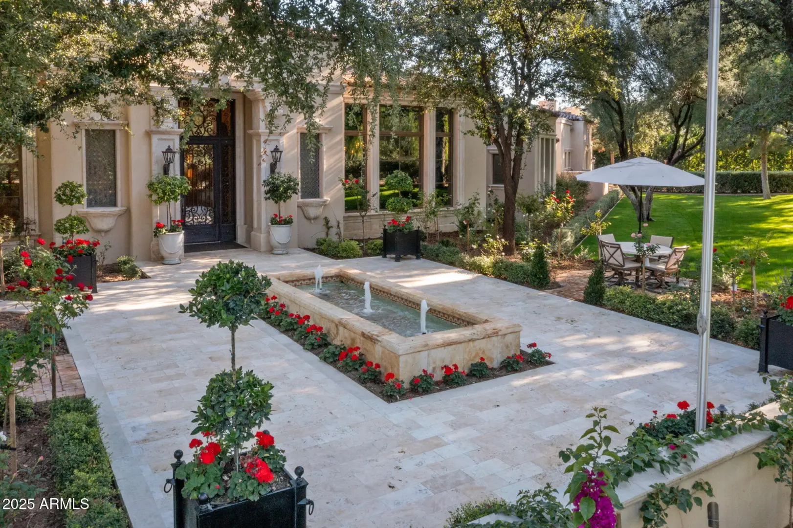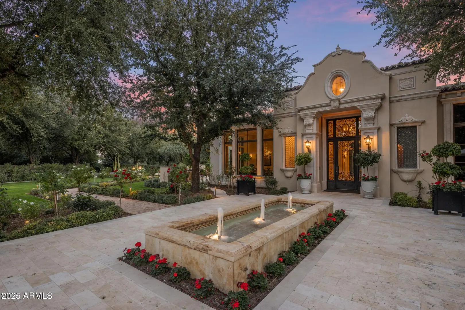 An exceptional Santa Barbara-inspired estate combining timeless elegance with updated modern luxury and craftsmanship rarely seen today, located in one of Paradise Valley's most coveted neighborhoods. Designed by Candelaria Design and built by MRA, this one-of-a-kind property offers over 10,500 sq ft of refined living space with 5 bedrooms and 9 bathrooms. Inside, the home features dramatic ceilings, graceful archways, honed limestone and wood flooring, and a layout designed for both everyday living and large-scale entertaining. The chef's kitchen includes an adjoining catering space and opens to a spacious family room. The primary suite includes sitting areas, dual bathrooms, custom his-and-hers closets, and an outdoor shower.
