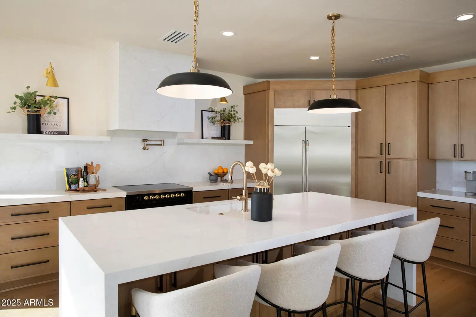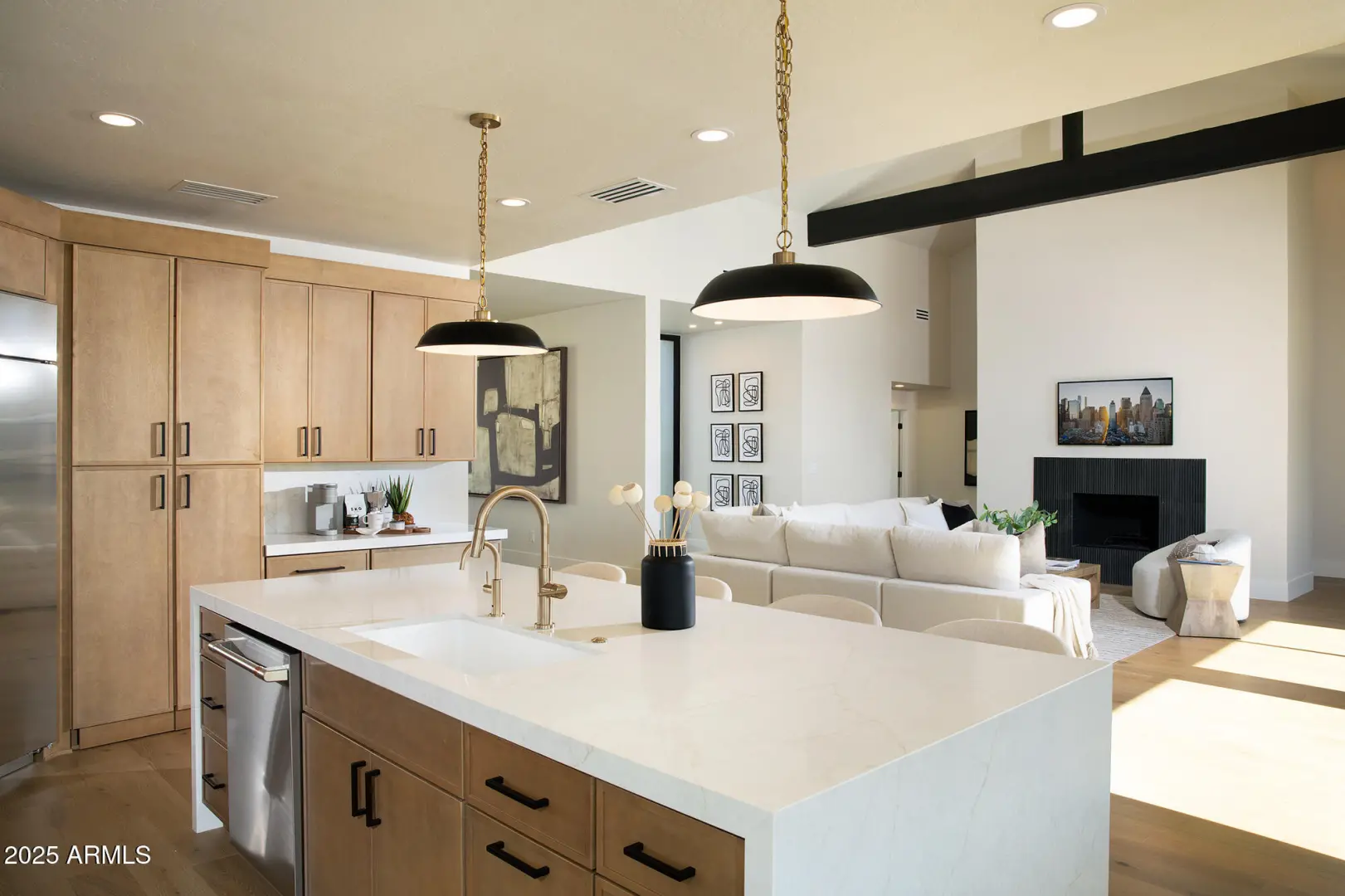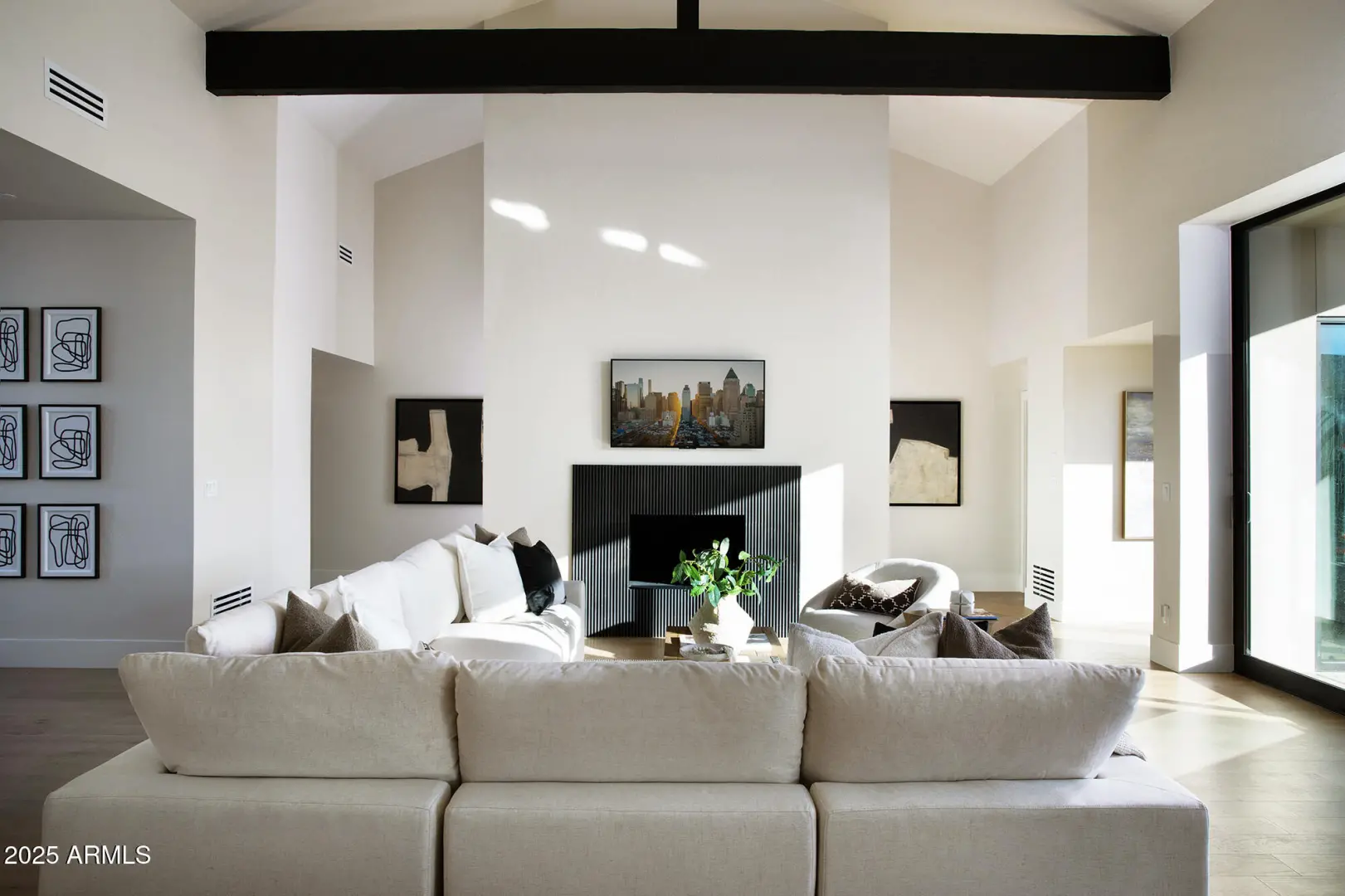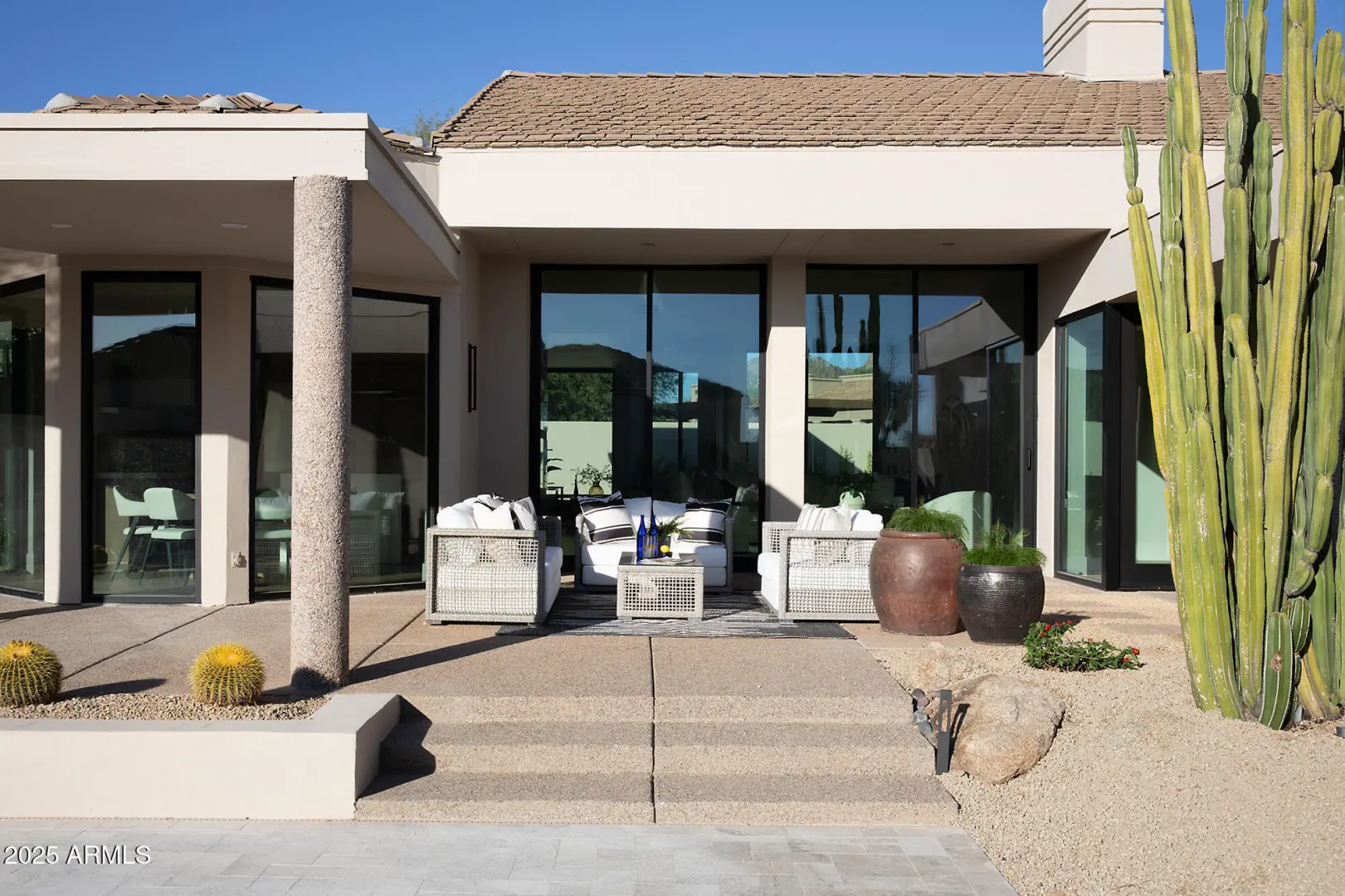 Set within a private gated community in the heart of the Pinnacle Peak corridor, this extraordinary patio home has been completely remodeled in 2025, offering an unmatched blend of sophistication, comfort, and contemporary desert style. Thoughtfully designed on one of the largest lots in the community, the home includes a detached casita and multiple inviting outdoor living spaces that capture the essence of Scottsdale's indoor-outdoor lifestyle. Inside, the open floor plan showcases soaring ceilings accented by custom solid wood beams and a masonry fireplace with stone facing, creating a warm yet modern ambiance. Every finish has been meticulously curated-from wood flooring throughout to custom light fixtures and clean contemporary cabinetry with custom hardware. The chef's kitchen is