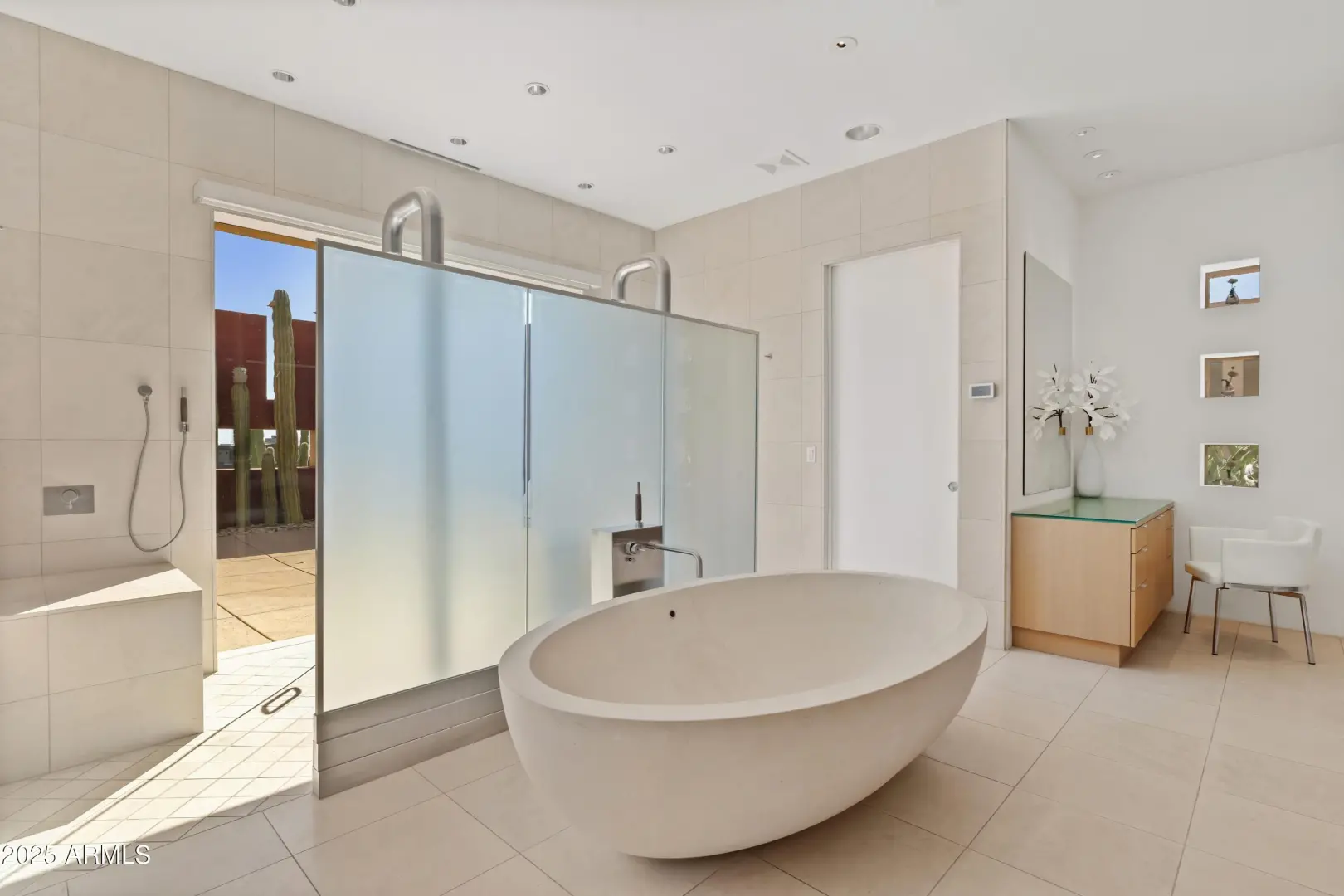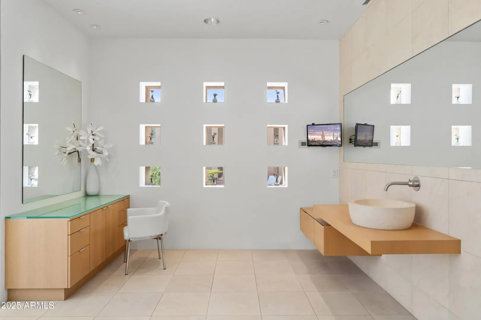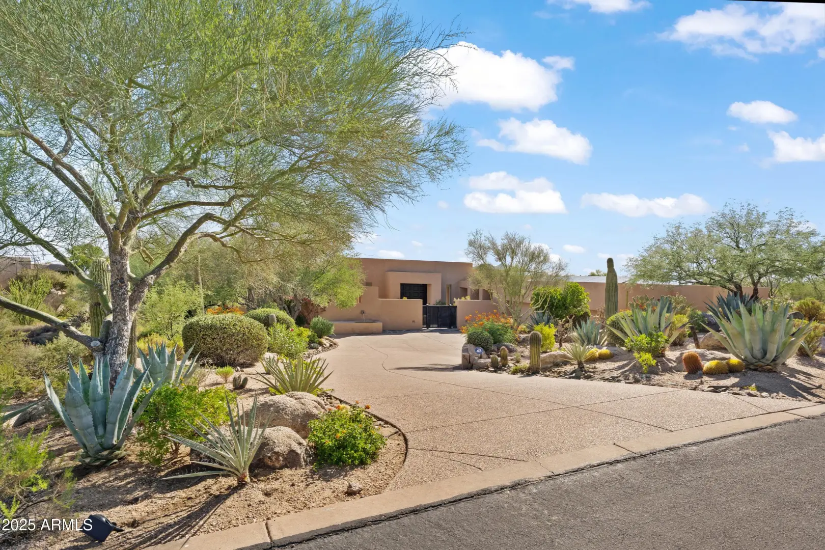 Timeless Mexican Contemporary Architecture. You are greeted at the gated courtyard with 200 year old pavers from Guadalajara.This 7900 sq. has 3 bedrooms ensuite and a home office (4th bedroom option). The perfect floor plan for entertaining with a formal living space (1100+ sq. ft.) complete with a wet-bar and floor to ceiling glass view of the outdoor pool patio. Oversized primary suite with 2 walk-in closets and Boffi hand carved Limestone vanities and bathtub. Multiple outdoor patios for relaxing. Motorized sunscreens throughout. Owned Solar. 1000 bottle wine cellar. 2 laundry rooms. Located on Renegade's #13 signature water hole. Oversized 3 car garage with HVAC.